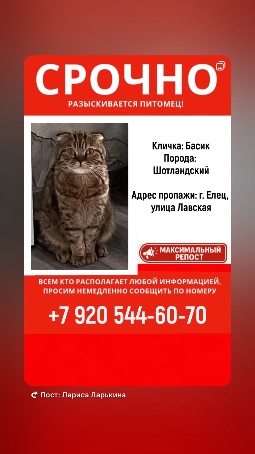 🆘🆘🆘ПОИСКИ БАСИКА ПРОДОЛЖАЮТСЯ🆘🆘🆘 Вероятно он находится у..