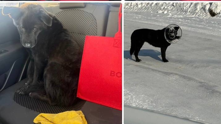Собаку ранее нашли на дороге замерзшую. У нее один глаз и плохо открывает рот, видимо ЧМ травма. Привезли в вет. лечебницу, а она сорвалась и убежала с воротником! Собака травмирована!