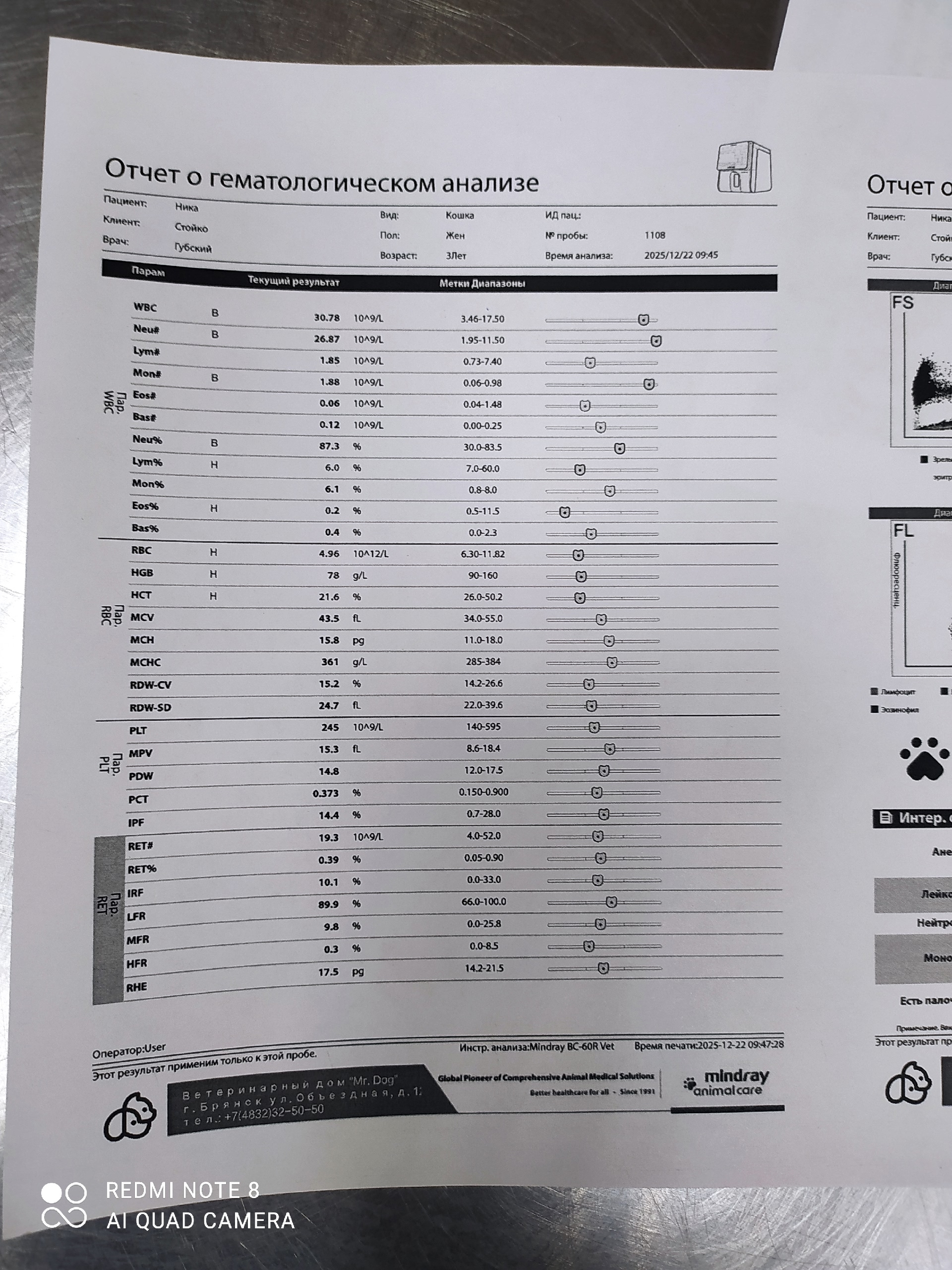 Окрас чёрный с белым, очень маленькая, вес 2,36 кг, на данный момент находится на стационаре.