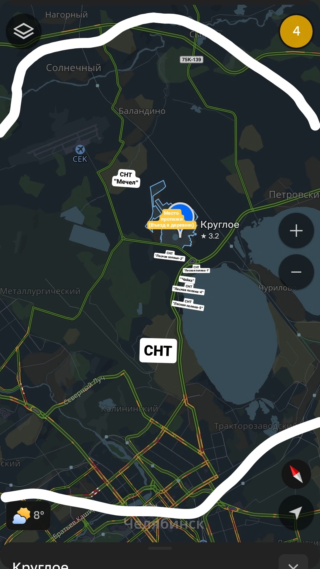 + место пропажи и, наиболее вероятно, возможные места текущего местонахождения, изображённые на карте.