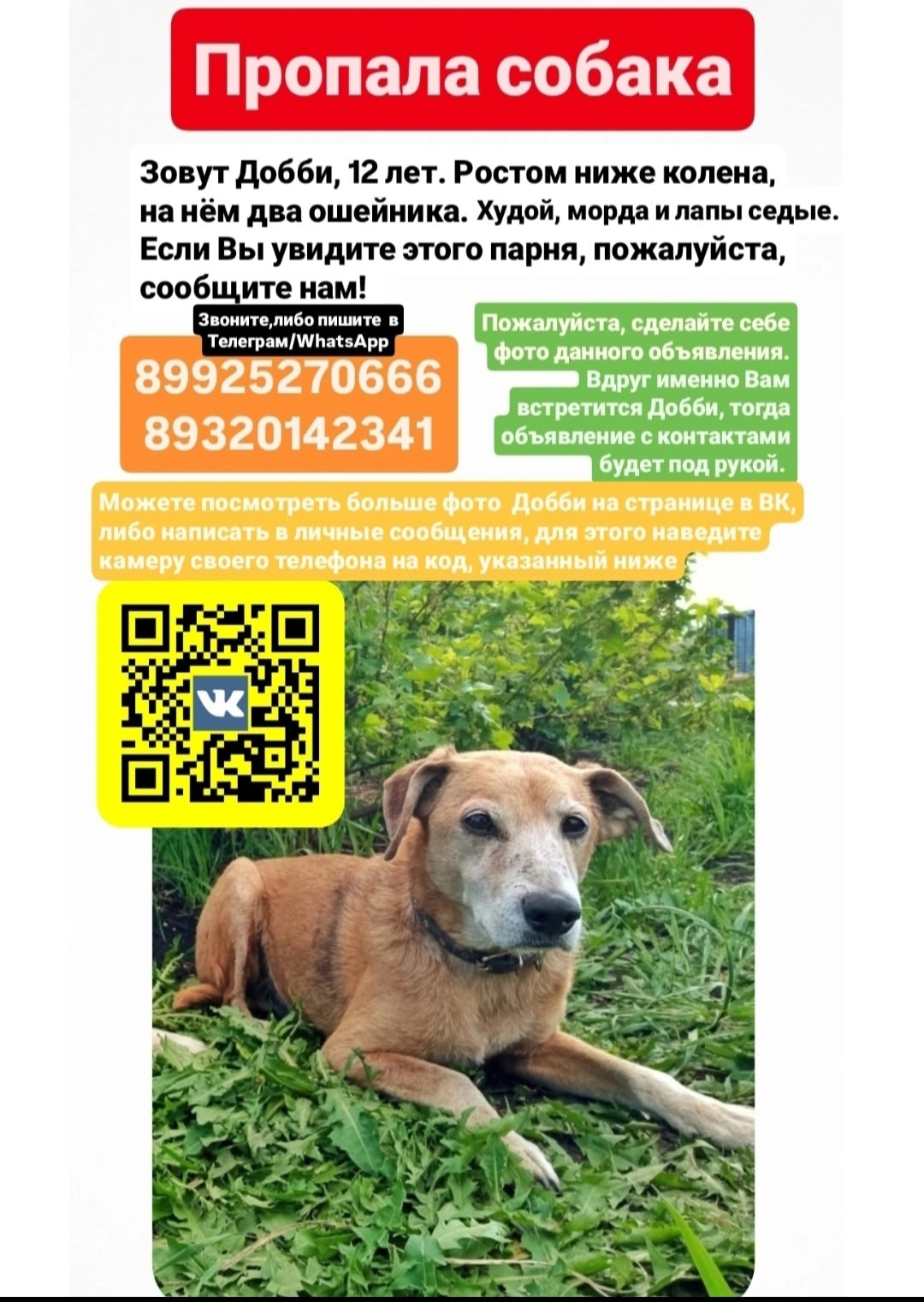 Если кто-то увидит Добби, пожалуйста, сообщите по любому из телефонов: