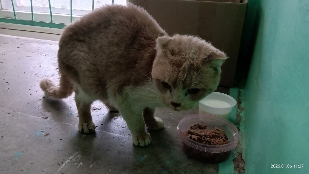 Срочно передержка!!! Котик болен и истощен. Дала ему таблетку доксициклина и больше не могу ничем помочь! Домой занести не могу, он заразит моих кошек. Клетку отдала, нету вариантов забрать.