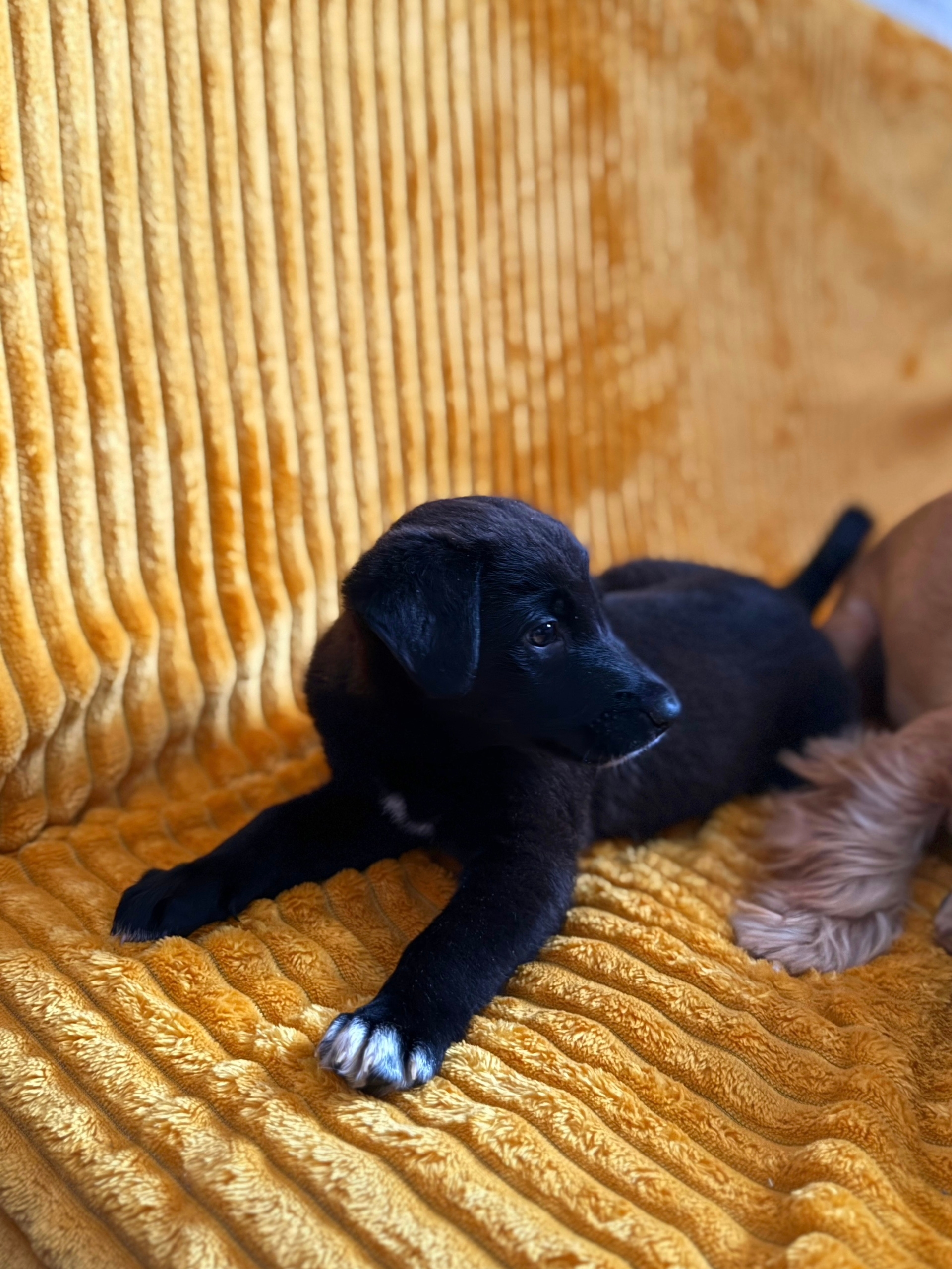 Очень легко обучается командам — уже знает команду «сидеть», ходит на многоразовую пелёнку.