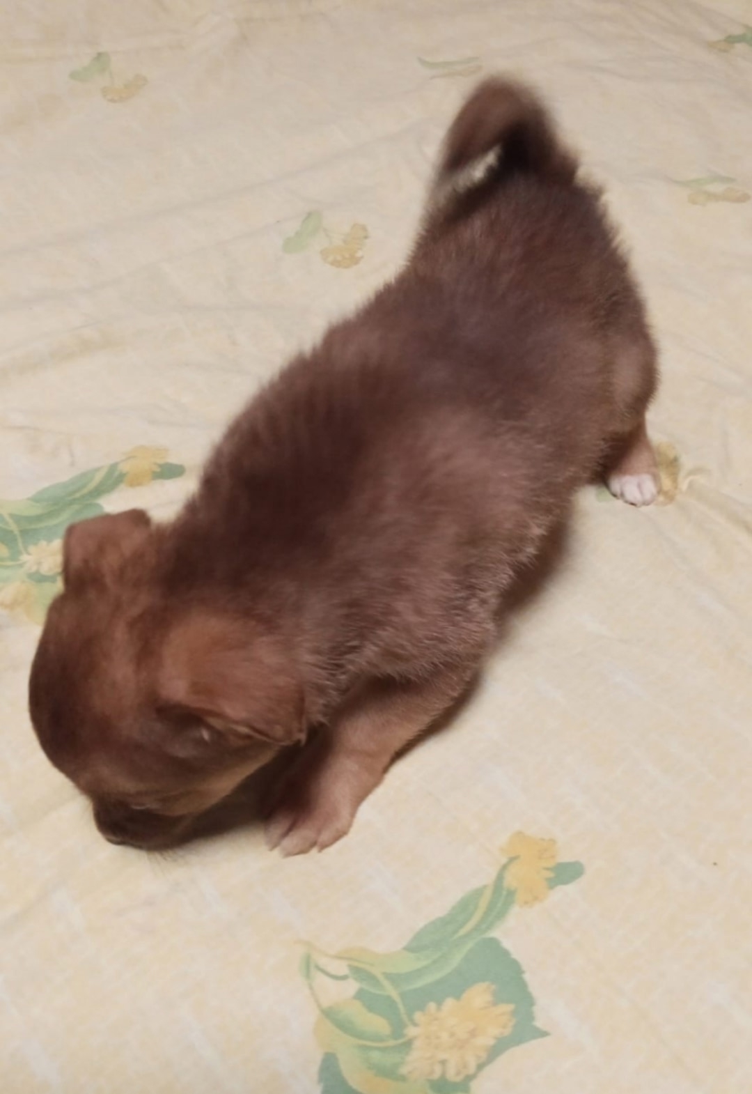 Маленькая, глазастенькая, хвостик колечком 😊 Ласковая, игривая, очень сообразительная.