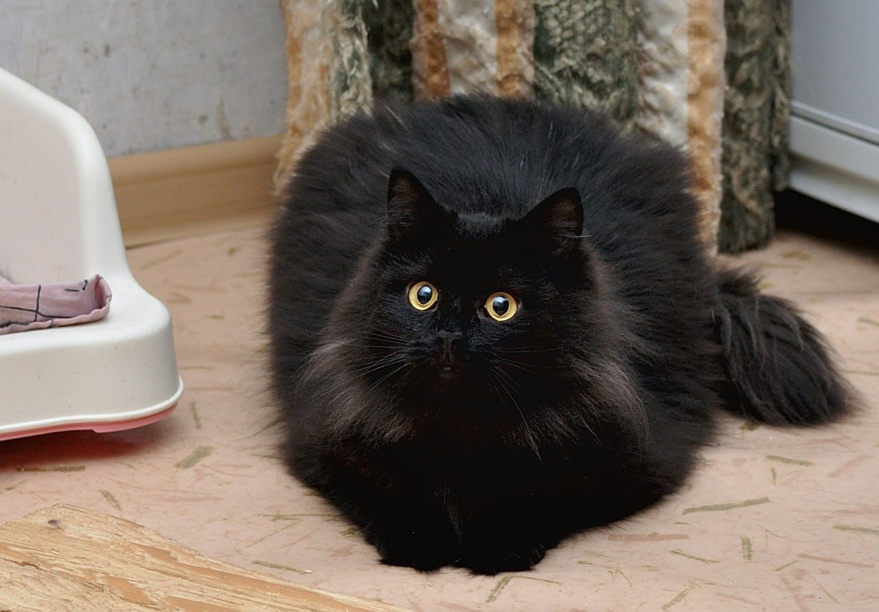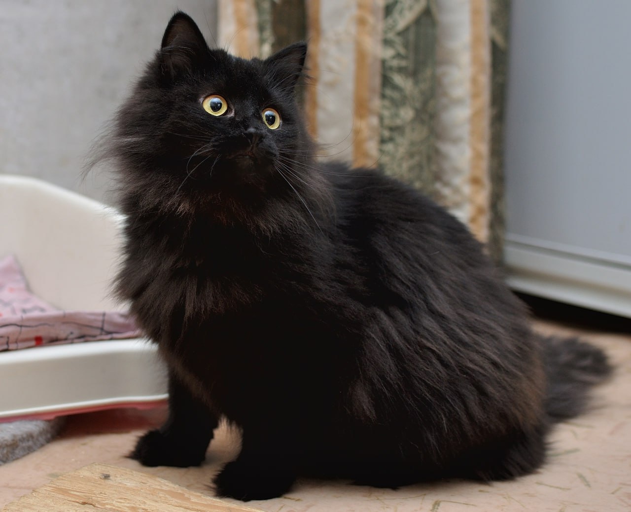 Муся не черная, а шоколадного цвета, как бурый медвежонок. На первых двух фото видно, что пушистый хвостик с большим количеством серебристой шерсти, это ее особенность. Такая же серебристость есть и за ушками, и на животике.