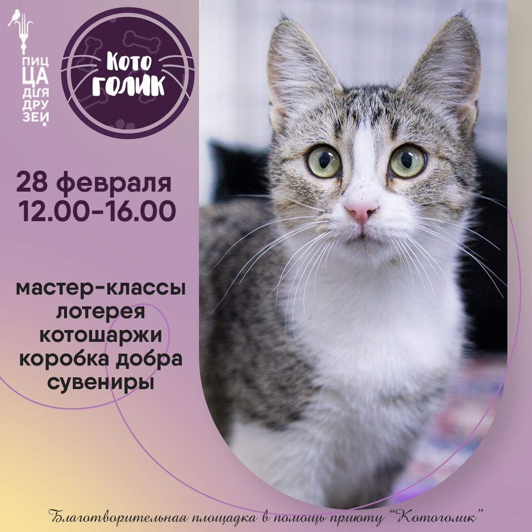 🐾В преддверии Дня кошек приглашаем вас на благотворительную площадку от приюта «Котоголик» 28 февраля с 12:00 до 16:00 в пиццерию «Для Друзей» (г. Северодвинск, ЦУМ, 3 этаж).