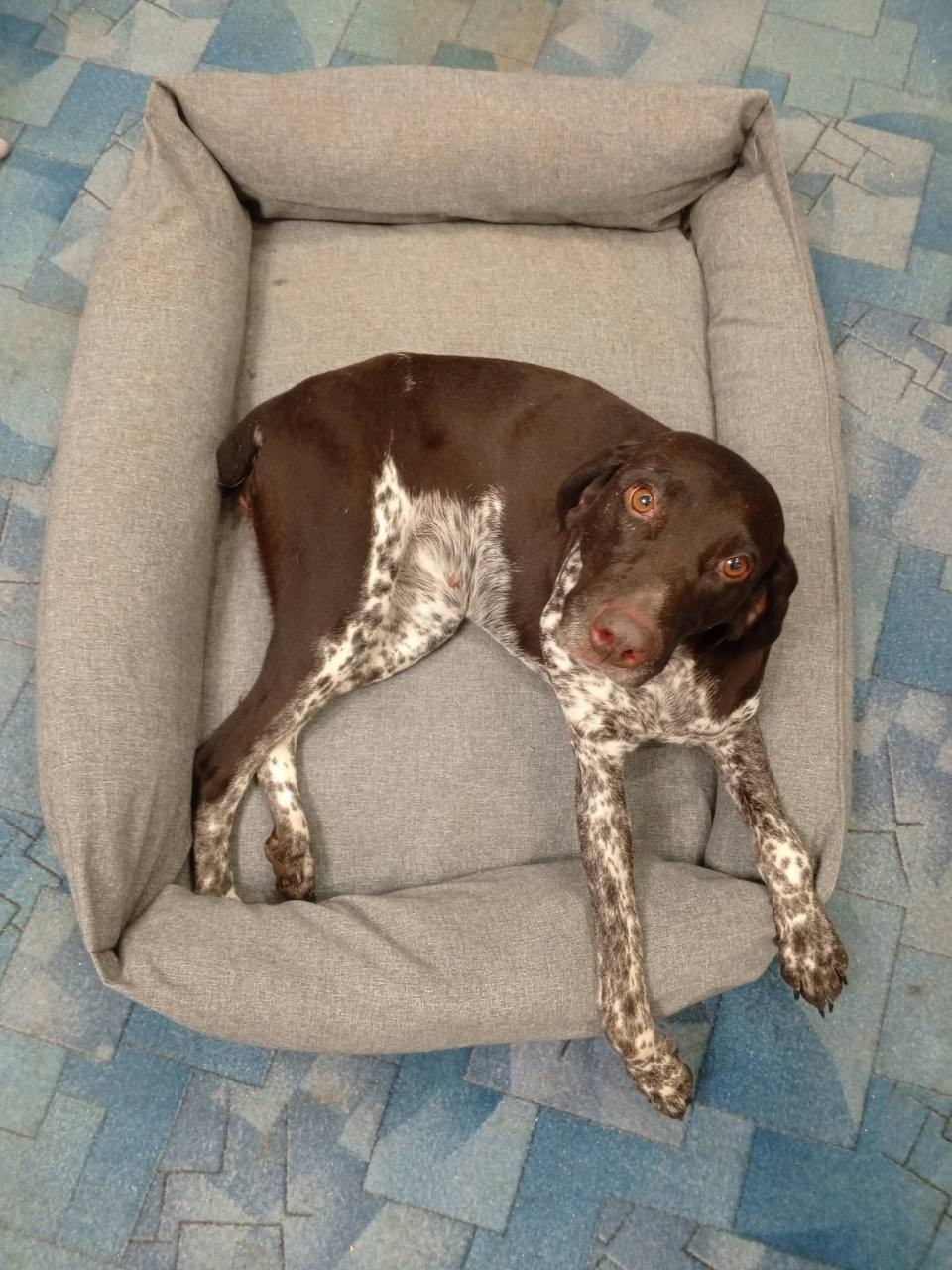 Найден курцхаар (сука), возраст около 3-х лет. Находилась в Тульской области на границе с Московской областью.