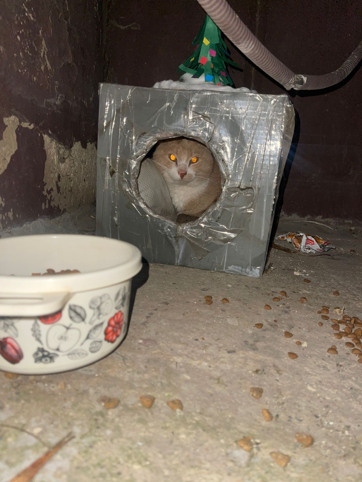 Он громко плачет, зовёт на помощь. На вид травм нет, выглядит ухоженным и здоровым, но, скорее всего, замёрз и простыл.