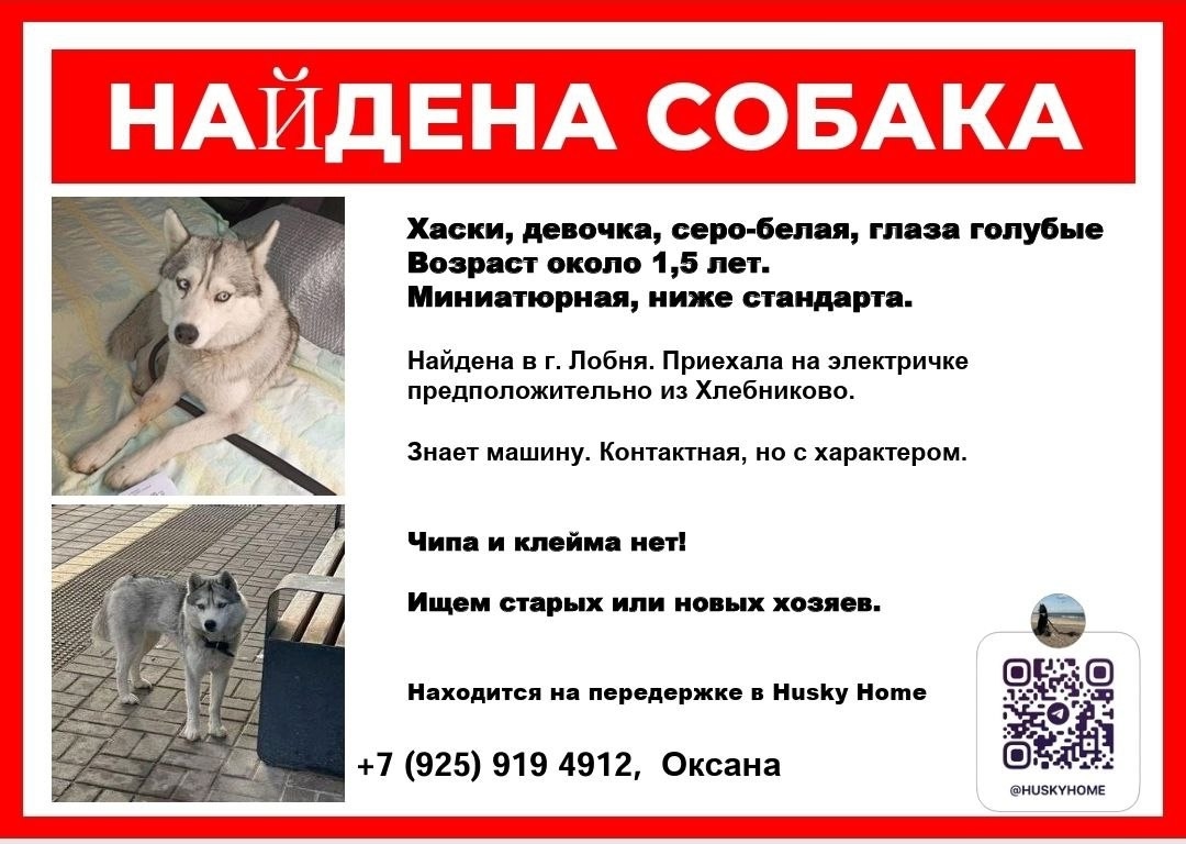 Сейчас эта милая и любознательная путешественница находится на передержке у волонтёров HuskyHome и очень ждёт встречи со своим хозяином.