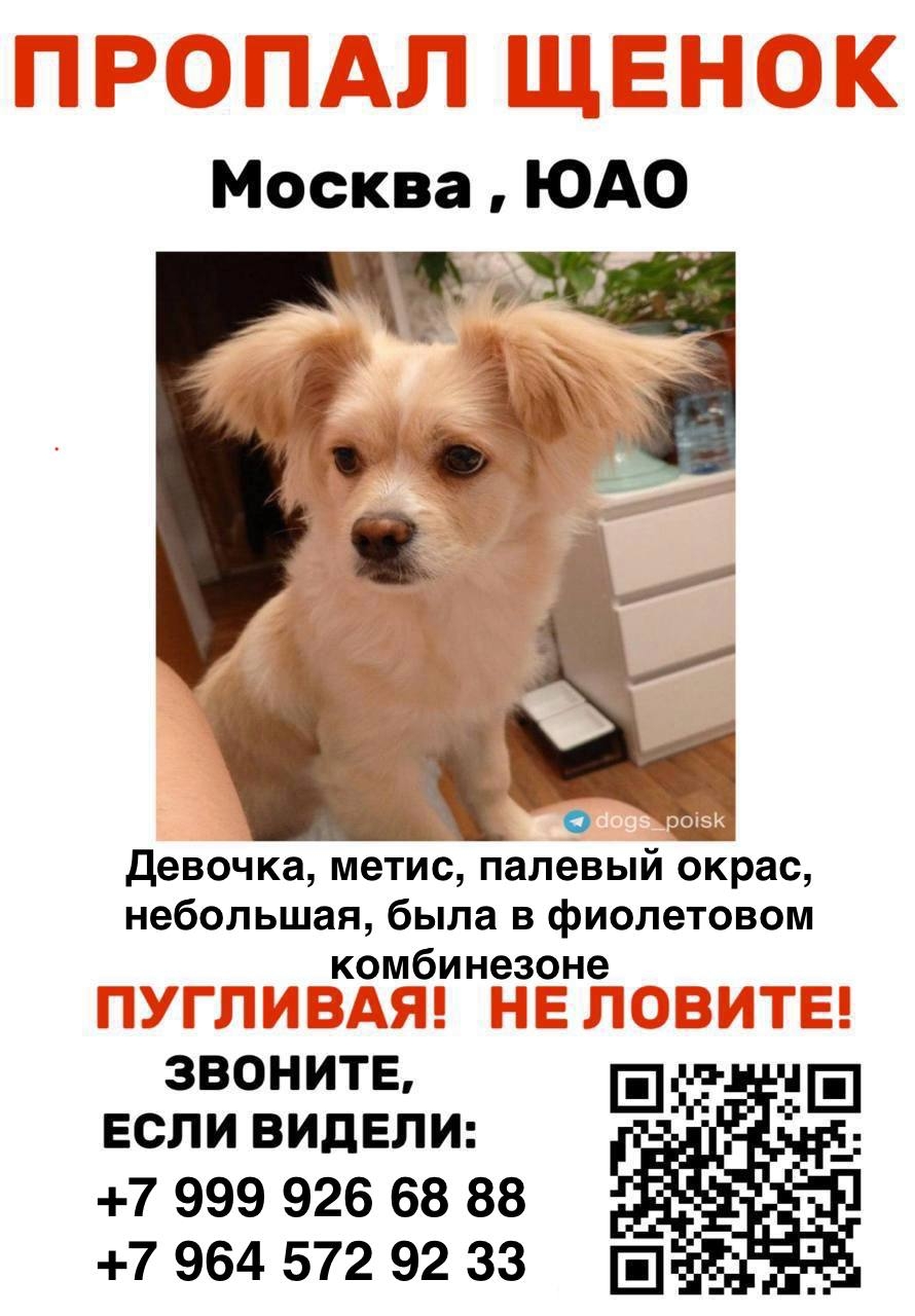🚨 СРОЧНО! ПРОПАЛ ЩЕНОК! ‼МОСКВА ЮАО • БРАТЕЕВО‼ ДЕВОЧКА, 8..