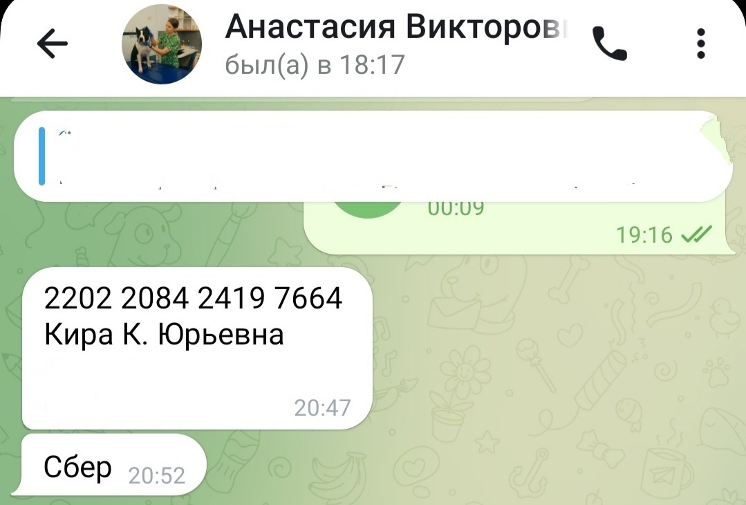 Карта на имя Кира Юрьевна К