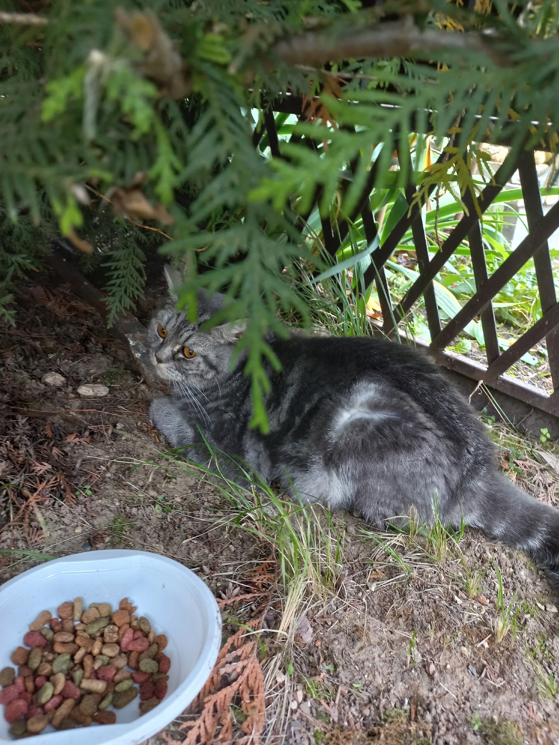 Кошку🐈 от помойки люди поставили к частному сектору. Была в стрессе, 🐈кошка ласковая, контактная.