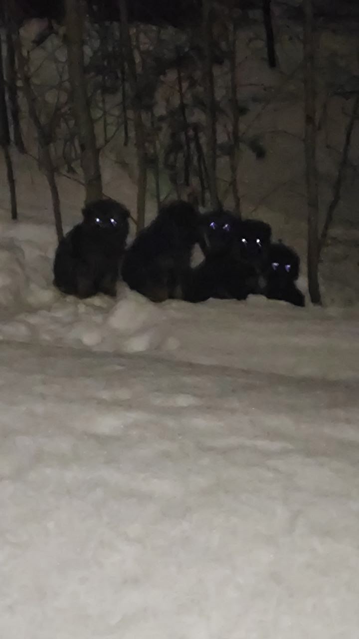 Вчера вечером сын вышел вышел на автобусной остановке, шёл по пути домой и увидел в снегу глазки , смотрящие на него и скулящие, 5 щенков, брошенных прям на снегу у дороги…Сразу звонит мне, говоря:” мама, тут брошенные щеночки на снегу, мёрзнут и плачут..”