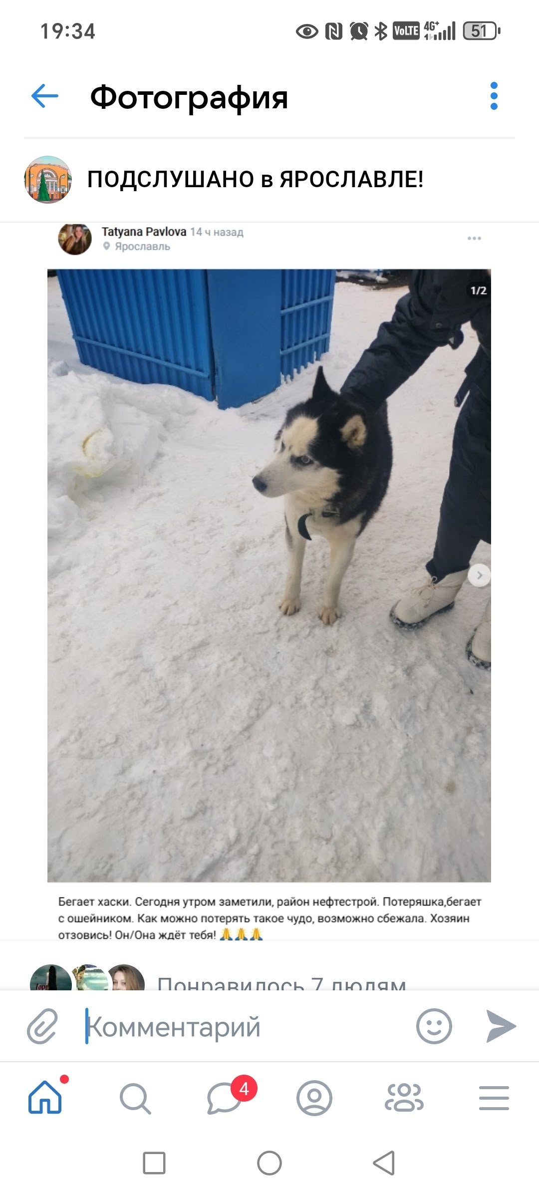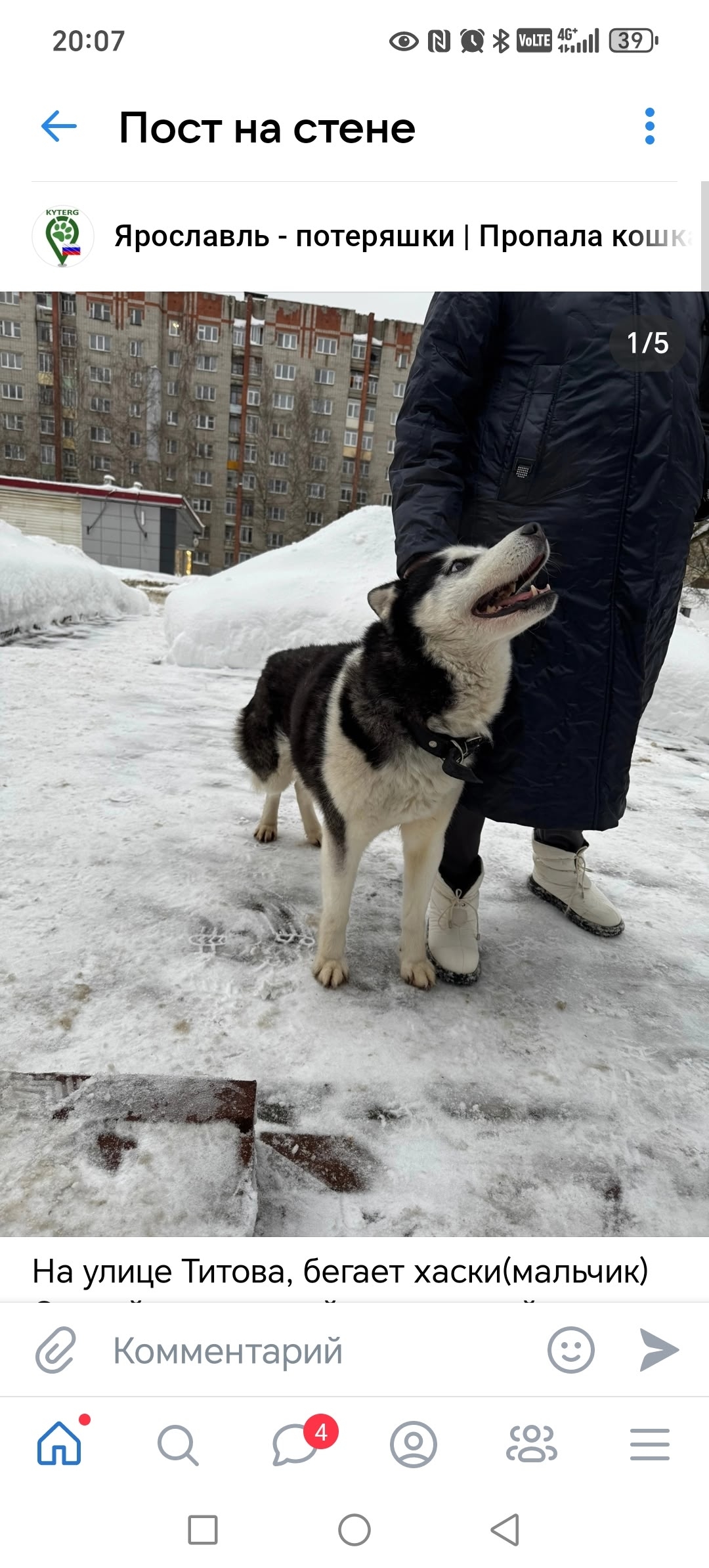 01.03.26 Найден кобель хаски на Нефтестрое у ТЦ Шоколад. Бегал.. Ярославль Автор admin Опубликовано Мар 4, 2026 0 0 Поделится WhatsAppViberTelegramVKOK.ru 01.03.26 Найден кобель хаски на Нефтестрое у ТЦ Шоколад. Бегал несколько дней на Титова, рынок “Чайка”. Чёрный ошейник. Срочно ищу хозяина. 89036465164. 0 0 Поделится