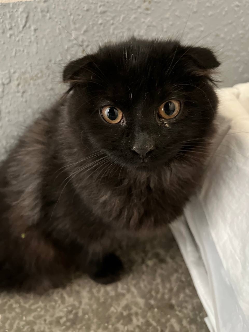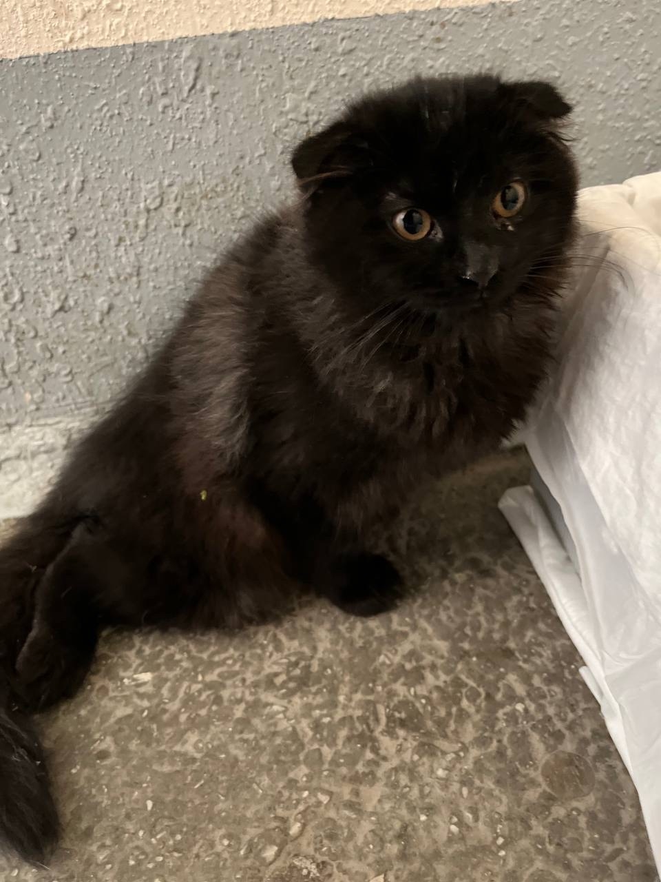 01.04.2026 г. в 9:30 под балконами второго подъезда по адресу Испанских Рабочих 28, г.Екатеринбург найден кот/кошка черного окраса, вислоухий, на вид – не большой. Похоже, что выпал с балкона/окна. Занесли в подъезд N2, по улице испанских рабочих 28.