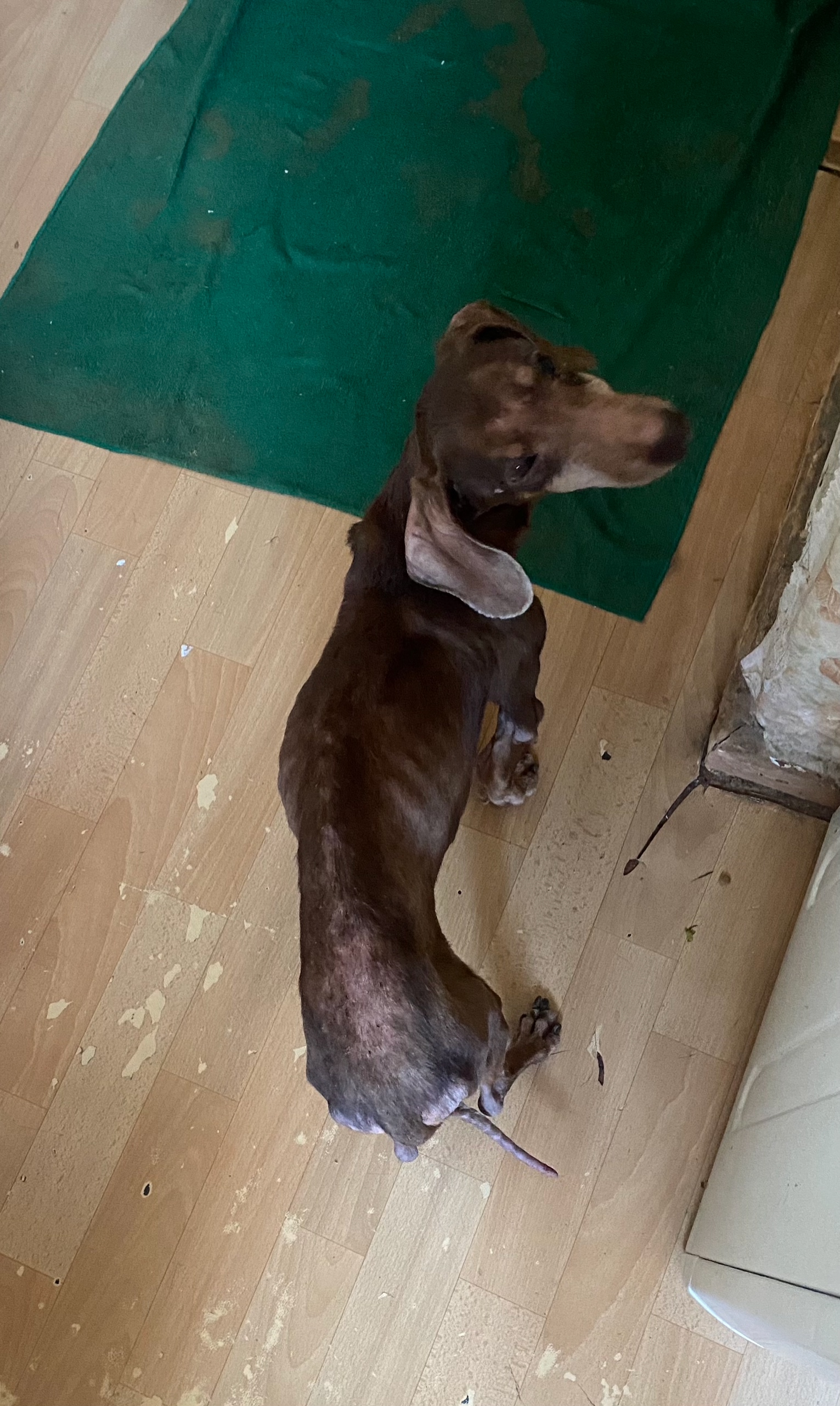 2 октября в районе ул. Будищева прибилась такса. Возраст 7-8 лет, очень истощенный, скорее всего глухой, спокойный , не агрессивный, не боится взмахов рук. Ошейника не было. У нас есть свои собаки и кот. Ищем ему добрых и ответственных хозяев. +7978 645 88 48 Марина