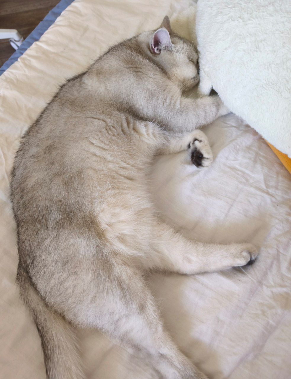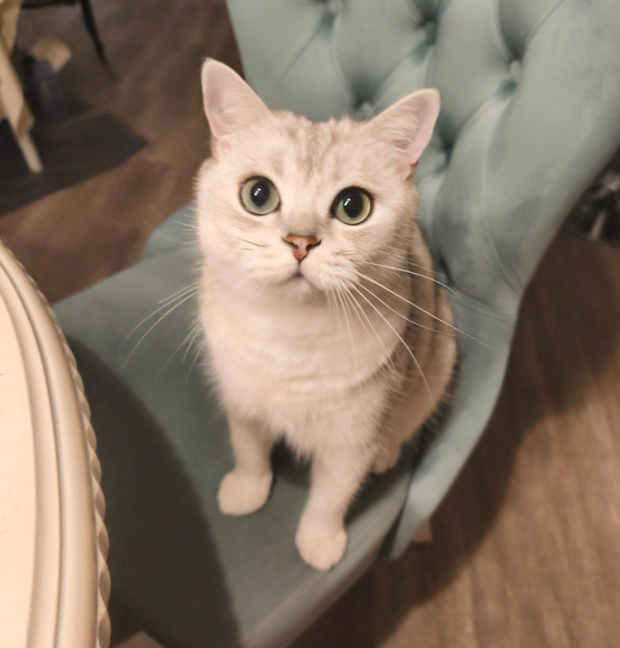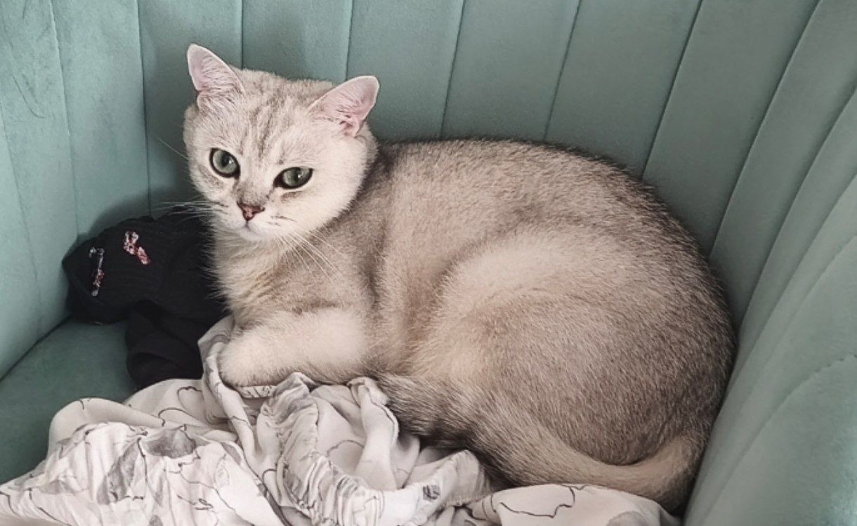 Шотландец, окрас серебристая шиншилла. Глаза тускло-зелёные.