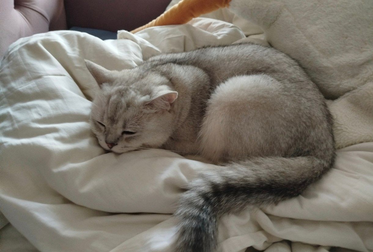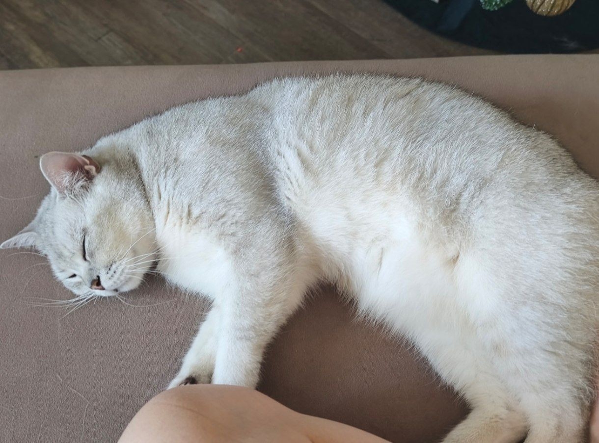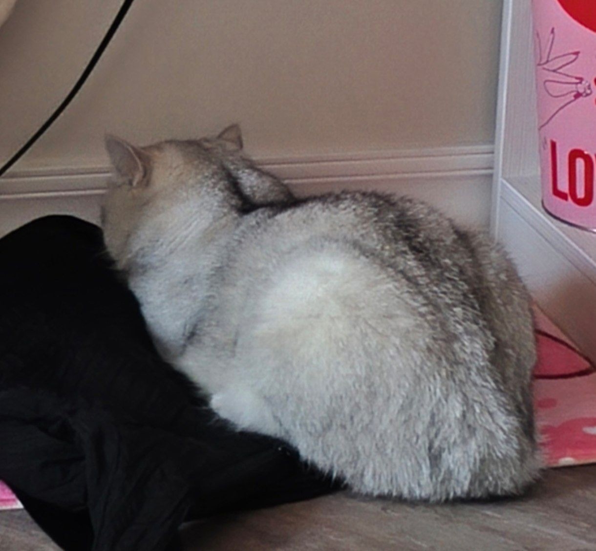 Шотландец, окрас серебристая шиншилла. Глаза тускло-зелёные.