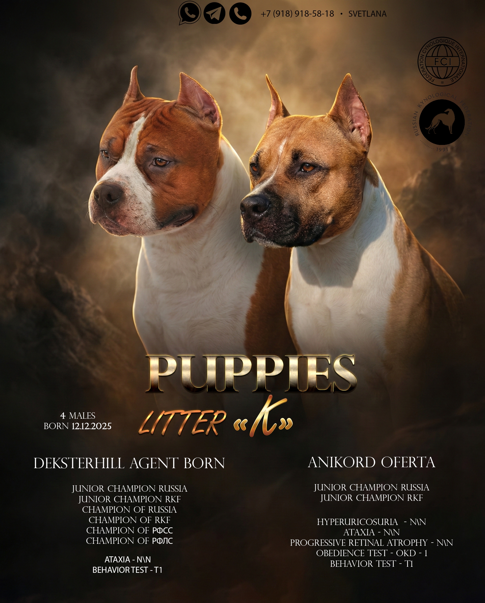 Американский стаффордширский терьер. Дата рождения 12.12.2025…