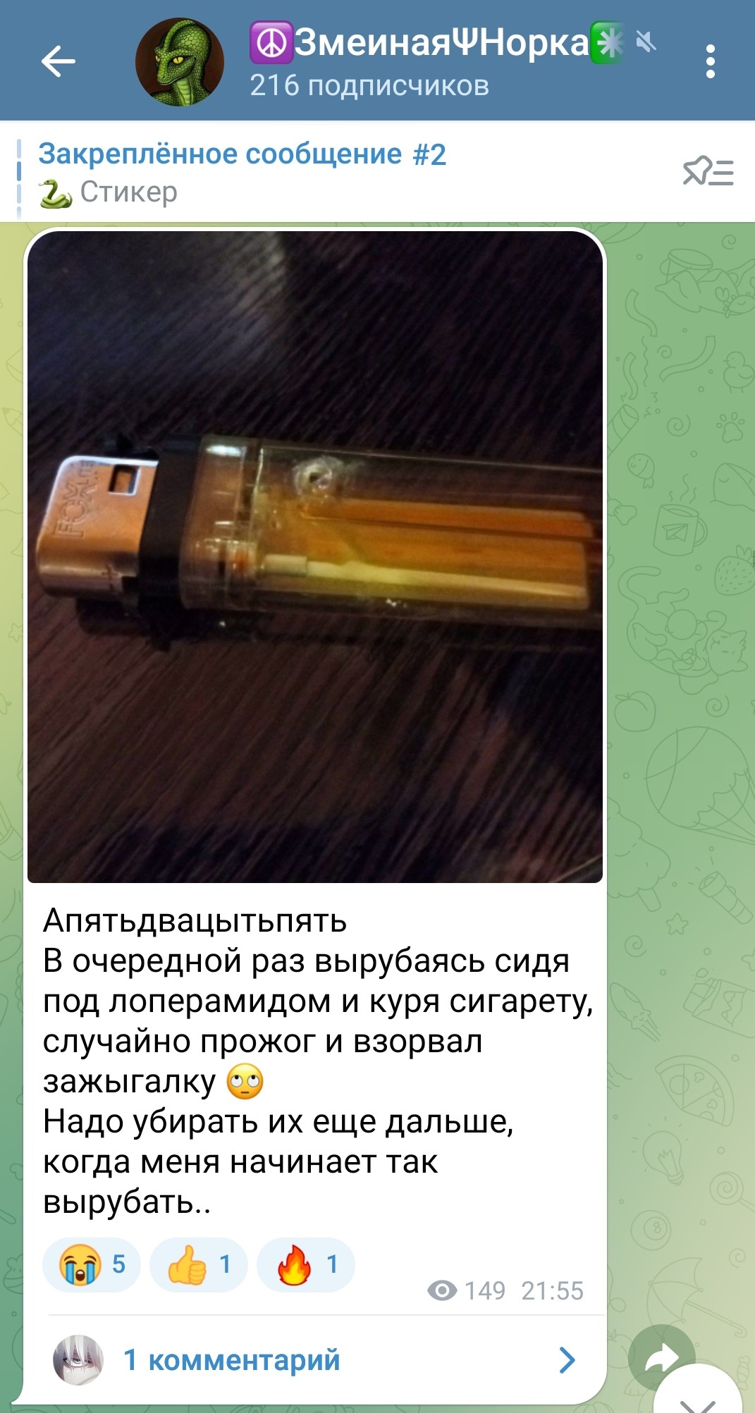 Помимо этого смирнова представляет опасность для соседей – она писала, что засыпала и взрывала зажигалку. Она могла устроить пожар, как и в другом случае, когда она писала, что прожигала ночнушку, когда засыпала.