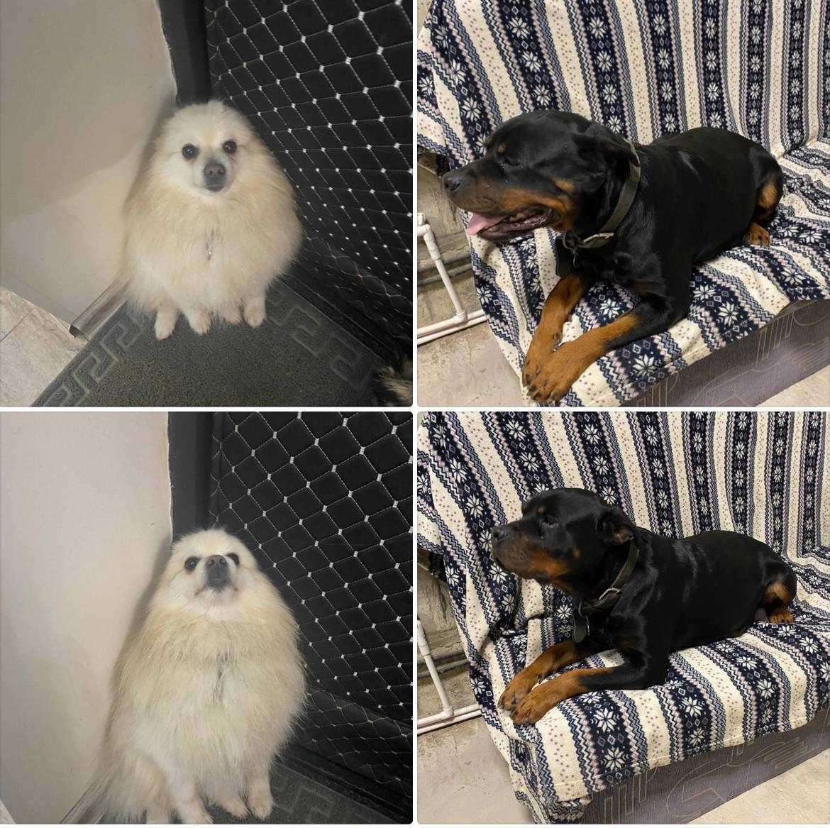 Помогите найти собак потерялись где то час назад из абрамцево. Может кто видел ротвейлер и белый шпиц. У шпица на ошейнике адресник.