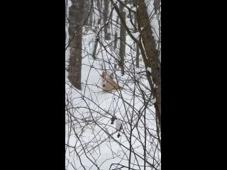 Бегает собака, видно что ищет хозяина, большая, похоже на лайку, у кого есть возможность распространить по группам, рост примерно по колено может выше, палевый, белая полоса на морде, выбежал на тропу к мужчине понял что не хозяин убежал опять в лес и лёг в сугроб