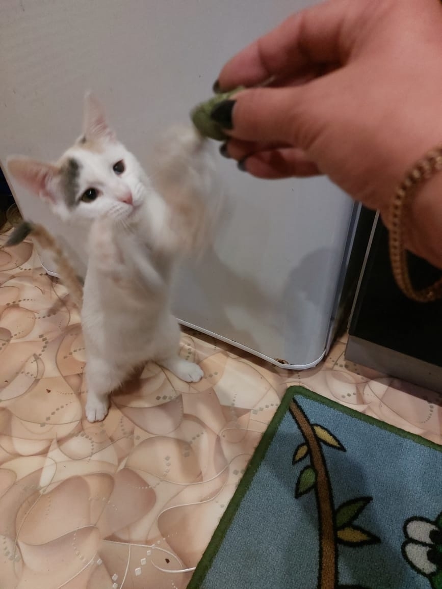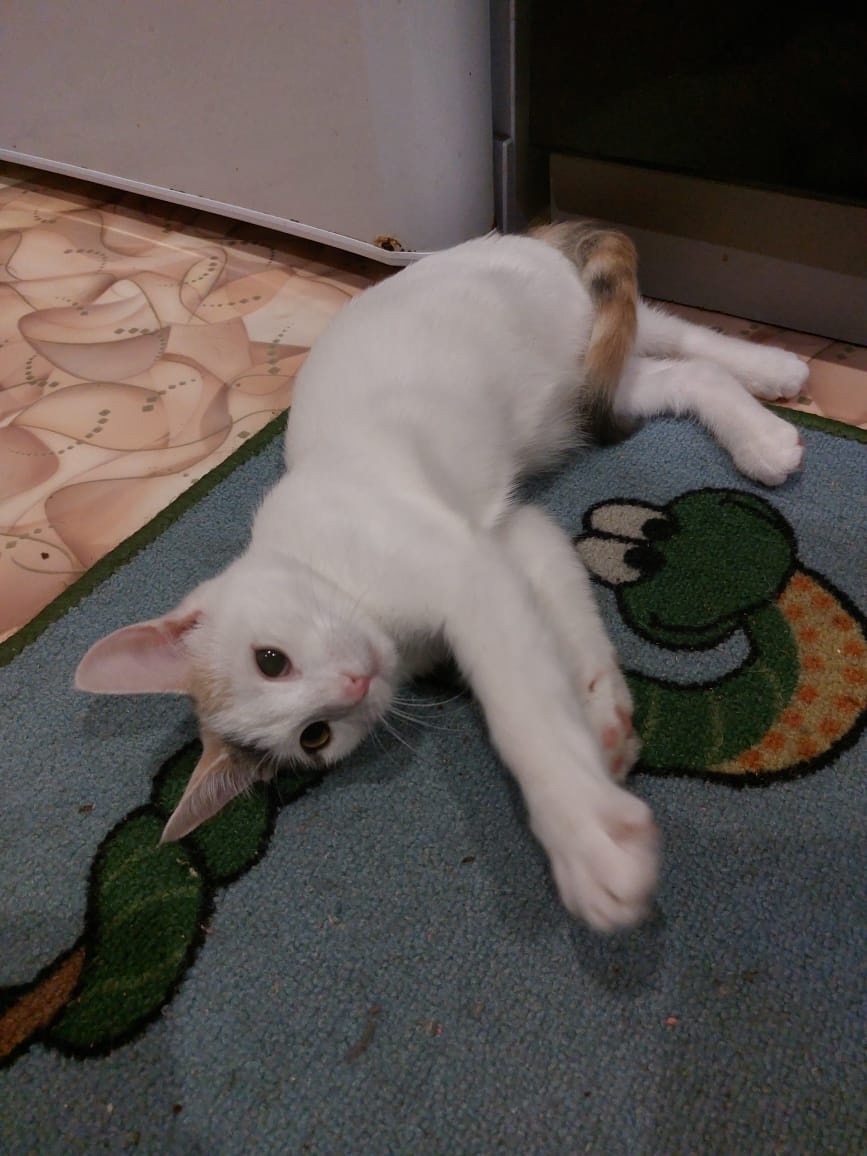 Бэлла – нежная и милая кошечка . Белая шерстка и необыкновенный окрас хвостика, мечтает о своей семье.
