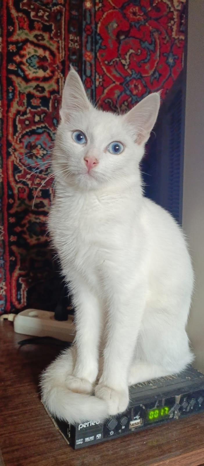 Гладкошёрстный, голубоглазый. С другими животными ладит, сам всегда первый проявляет желание играть. Залезть на кухонный шкаф, запрыгнуть на окно, покататься на шторах – он первый. Ооочень активный🚀🐈😂.