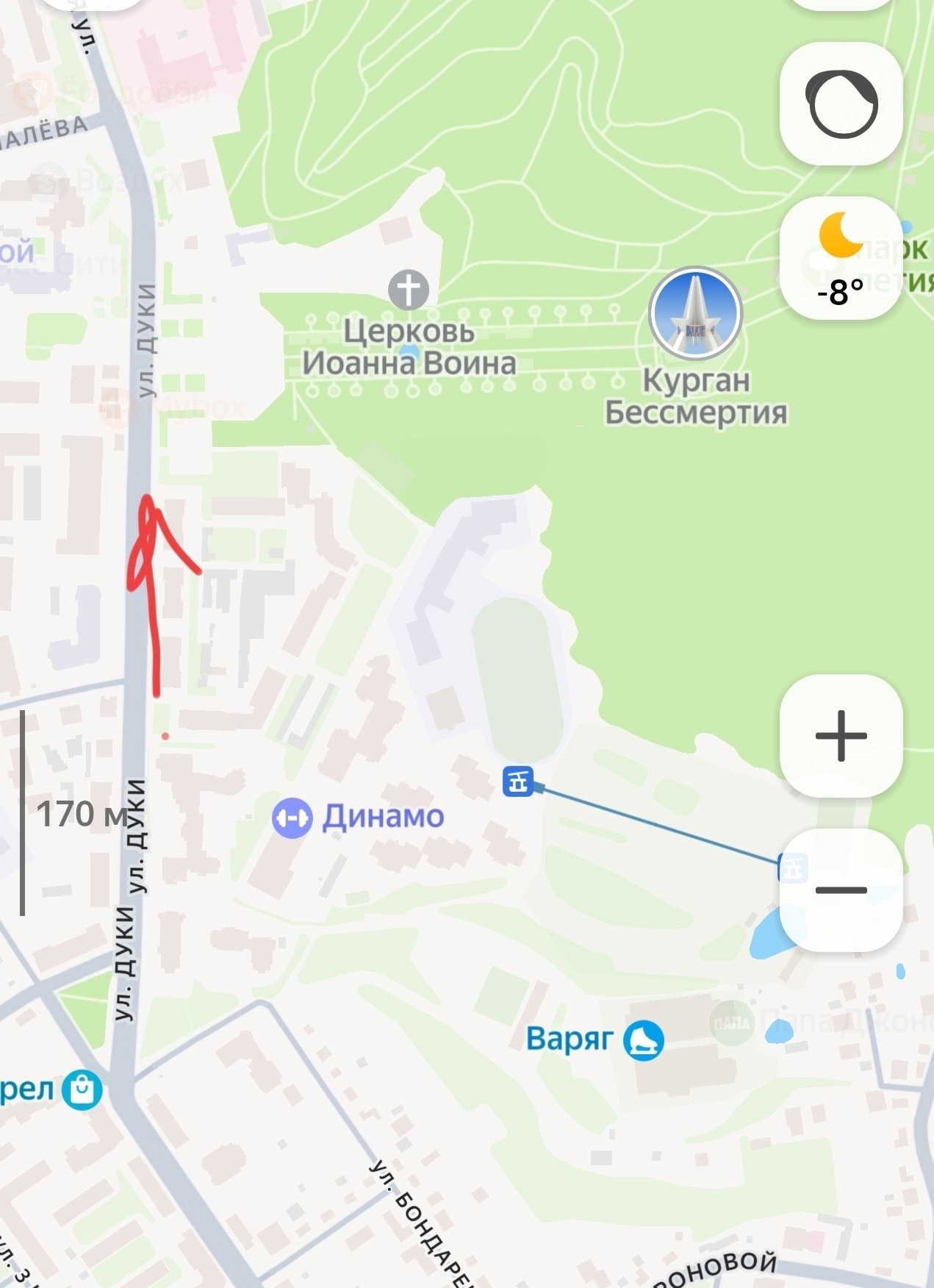 Последний раз видели 21.02 в 21:05, бежал в сторону Кургана, как показано на карте. Сейчас может быть где