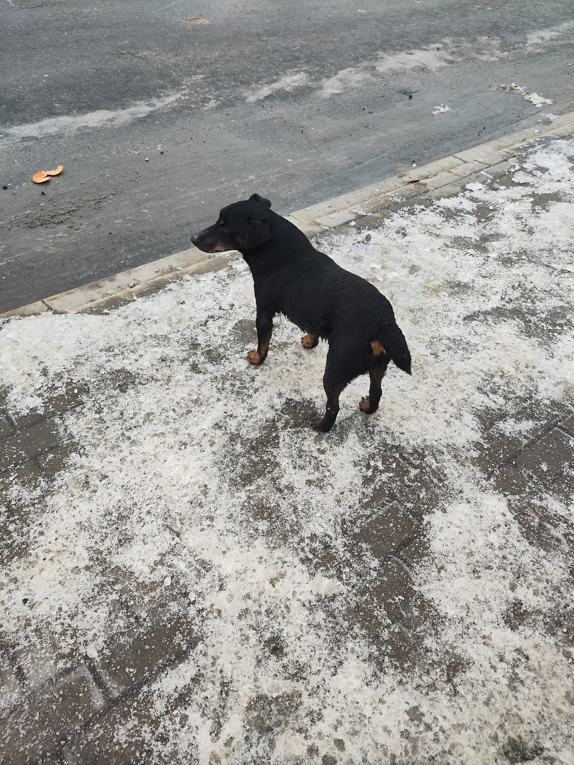 ПРИМЕТЫ: черный гладкошерстный, шерсть короткая, сам среднего размера, хвост купирован, поджимает заднюю лапу(в основном правую) когда передвигается.