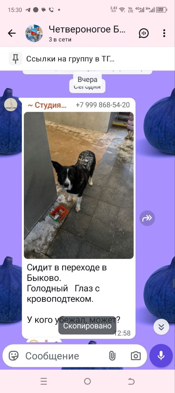 Быково, Раменский район. Замечен пес. Черный с белым. Замерз!..