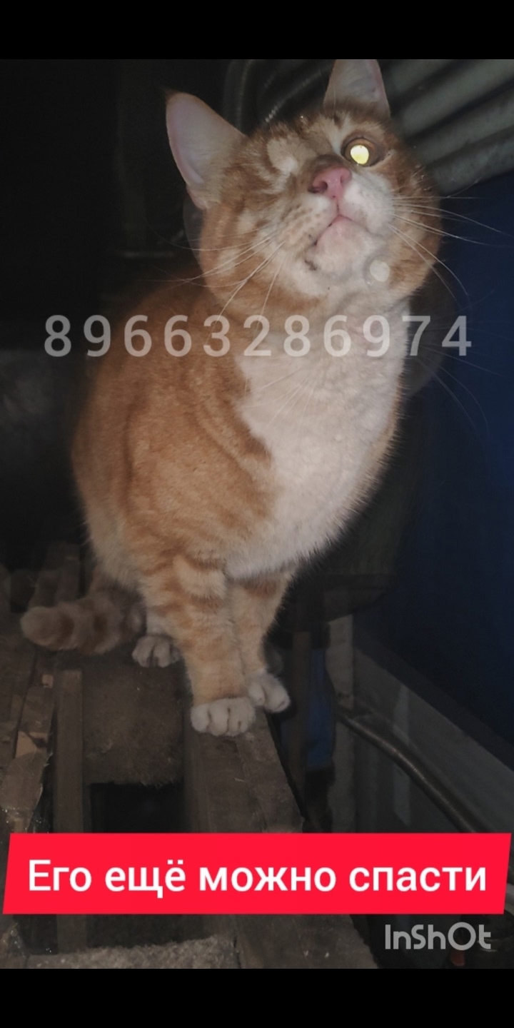 Одноглазый котенок на помойке, куда ходят собаки. Он инвалид и ему трудно на улице, хотя есть кормилица.