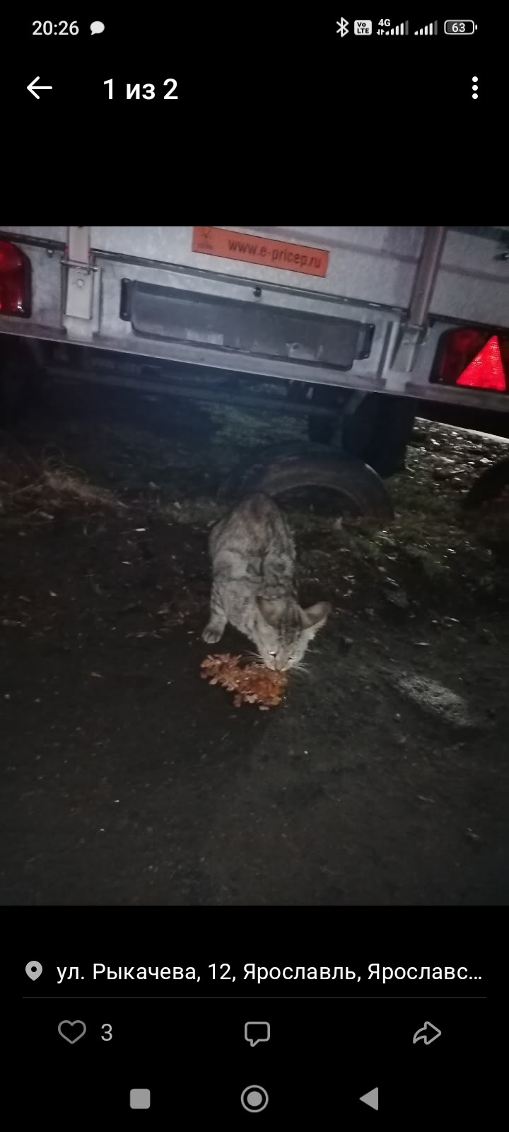 Чей или чья потеряшка??? Третий вечер орёт не своим голосом на Нефтяников. Животное пугливое, очень голодное. Есть ошейник от блох. Хозяева отзовитесь!!! Или может у кого есть информация об этом животном.г.Ярославль, Рыкачева, 12