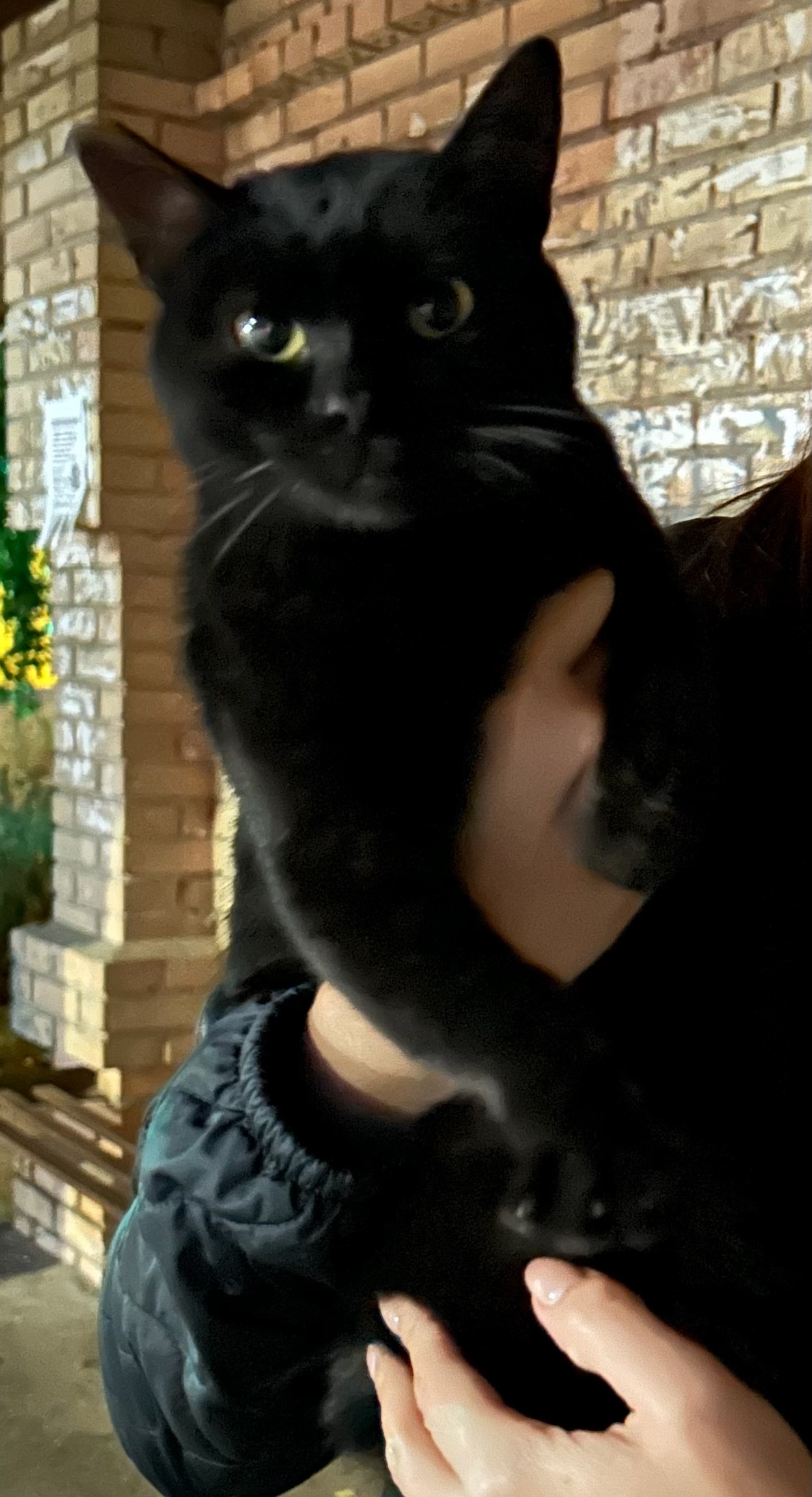 Черная молодая красавица ждет добрые руки. Подбросили, выживает на улице. Была домашняя, поскольку чистая и пока здорова. Удивительной красоты, ласковая и мурчащая. Подарите малышке дом. Если не стерильна, свожу к ветеринару и оплачу операцию.