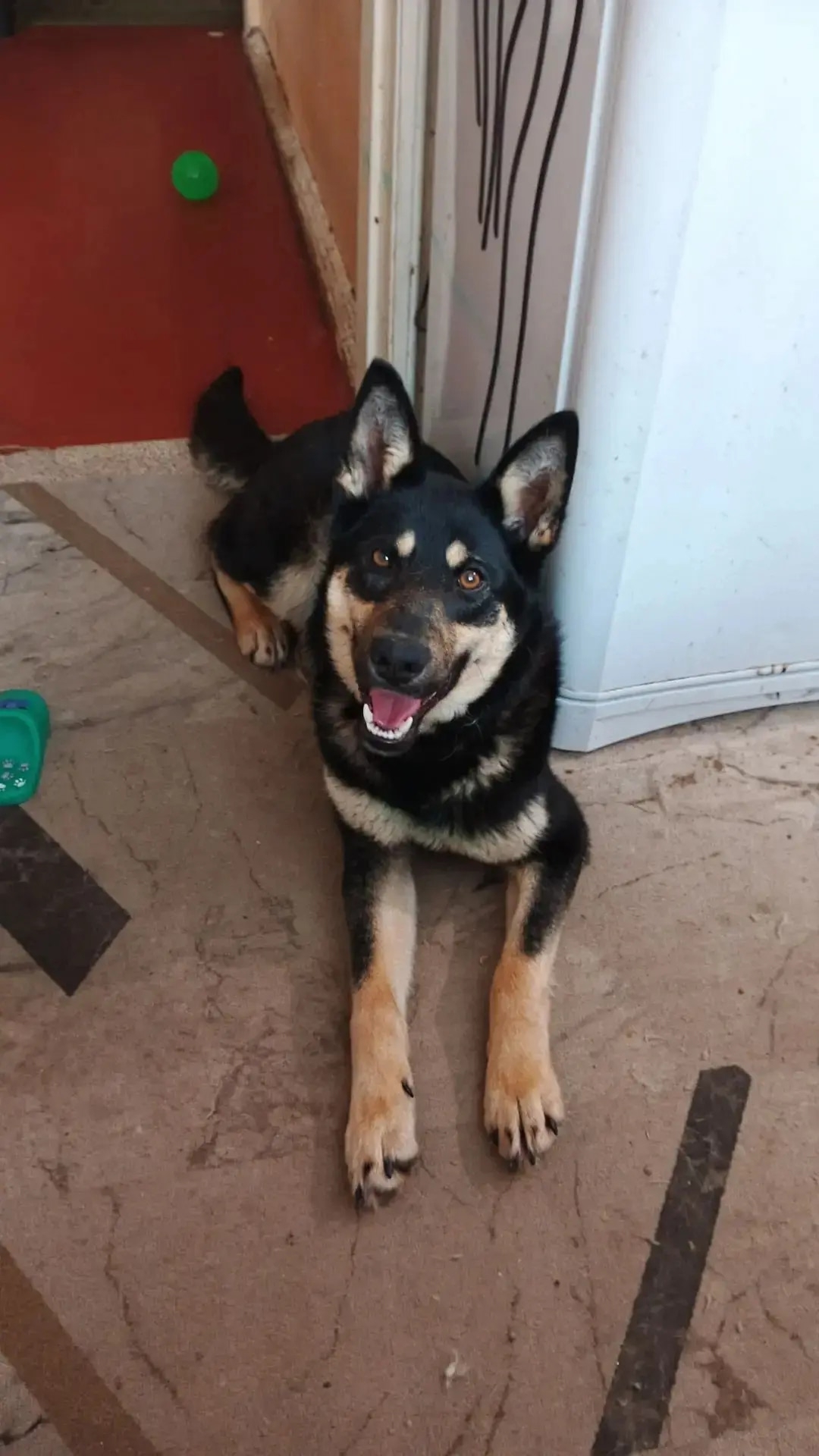 Девочка бегала в черногубово, покусанная, я со своим в магазин ходил, увязалась следом до квартиры, пустили к себе, свозили в ветеренарку, рентген показал повреждение позвонка но не критично, жила у нас до вчерашнего дня, а на прогулке убежала(17марта).