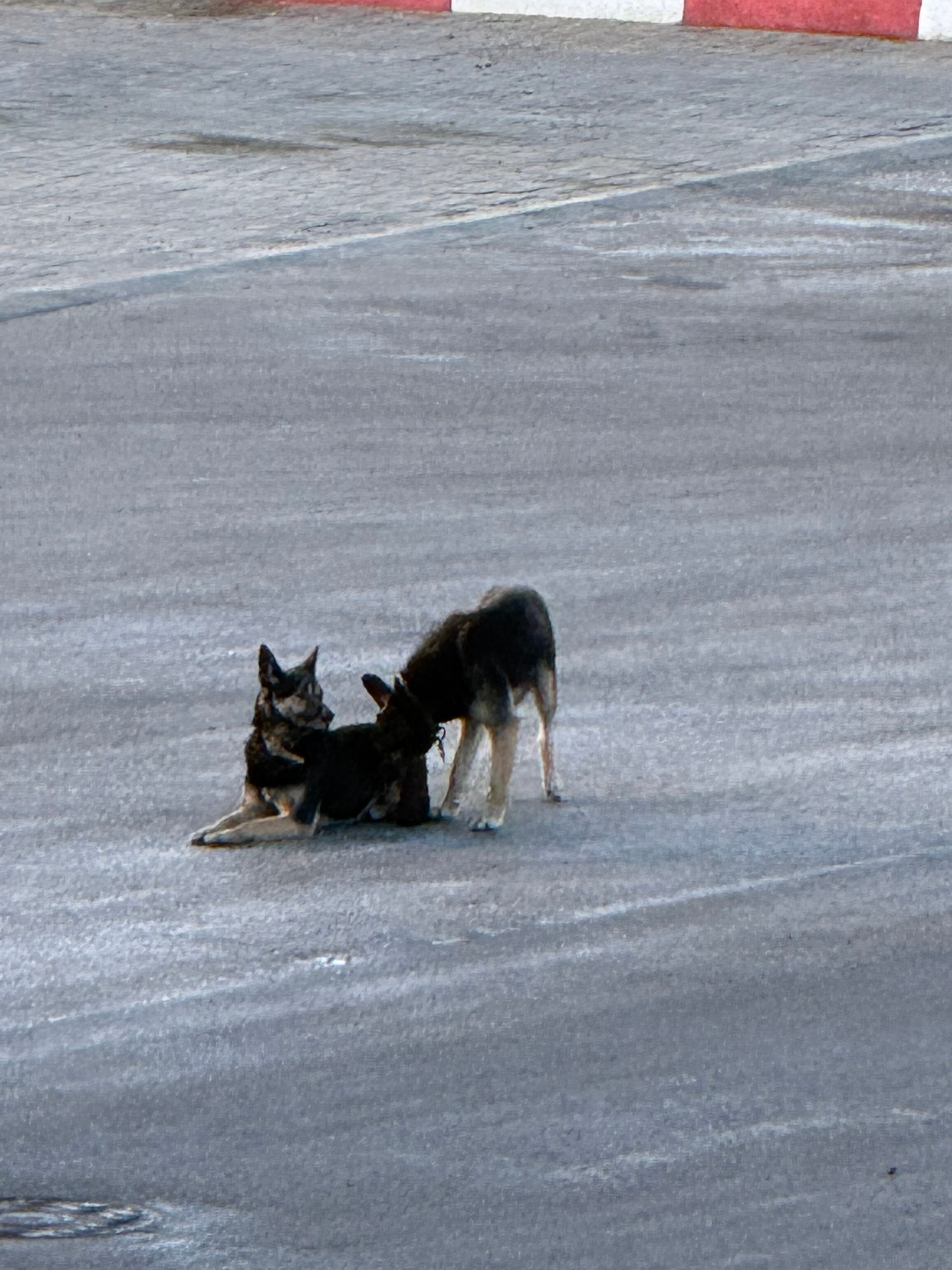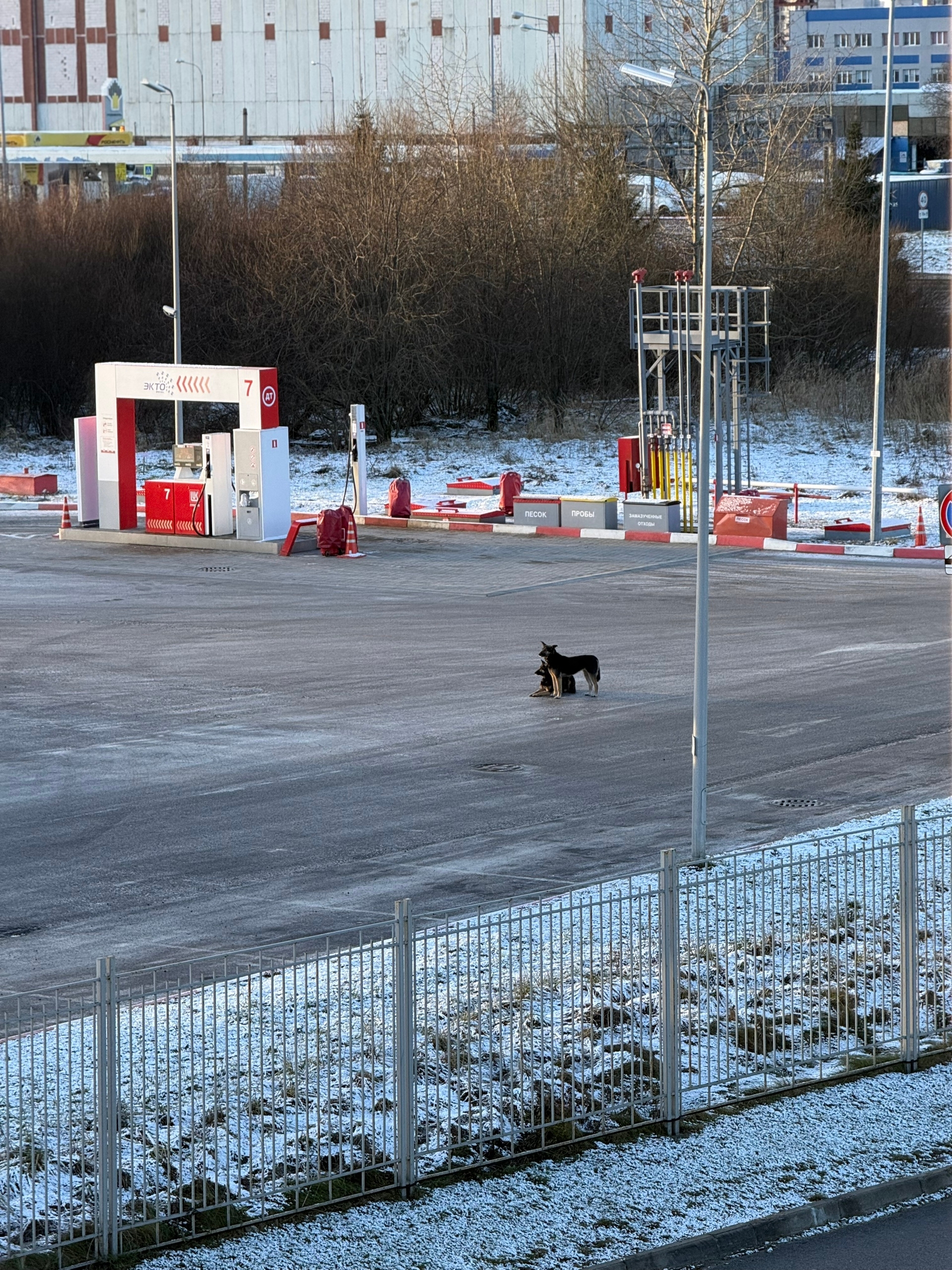 Чьи собаки на Лукойле? В ошейниках Их бы забрать с заправки, могут..