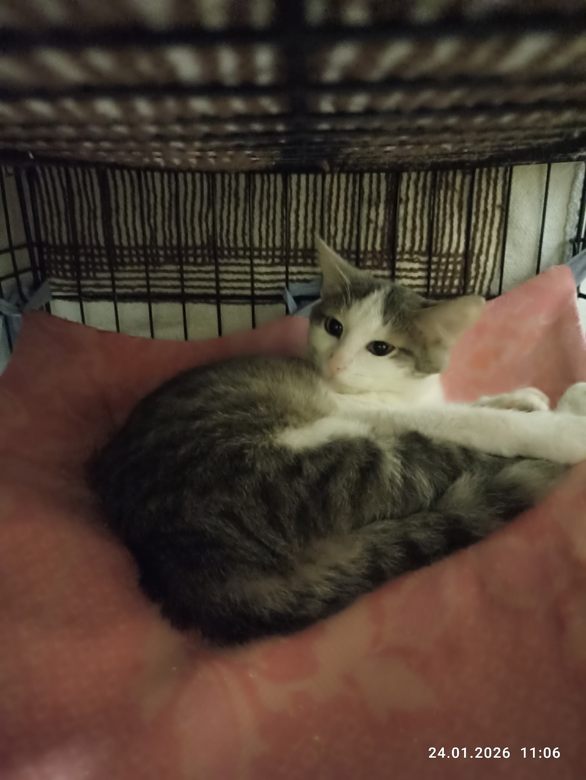 Вы только посмотрите на этих малышей! Они просто неотразимы. 😍 У нас две весёлые девочки: Налика – ярко-рыжая с красивым рисунком табби и очаровательная серо-белая – Дымси.