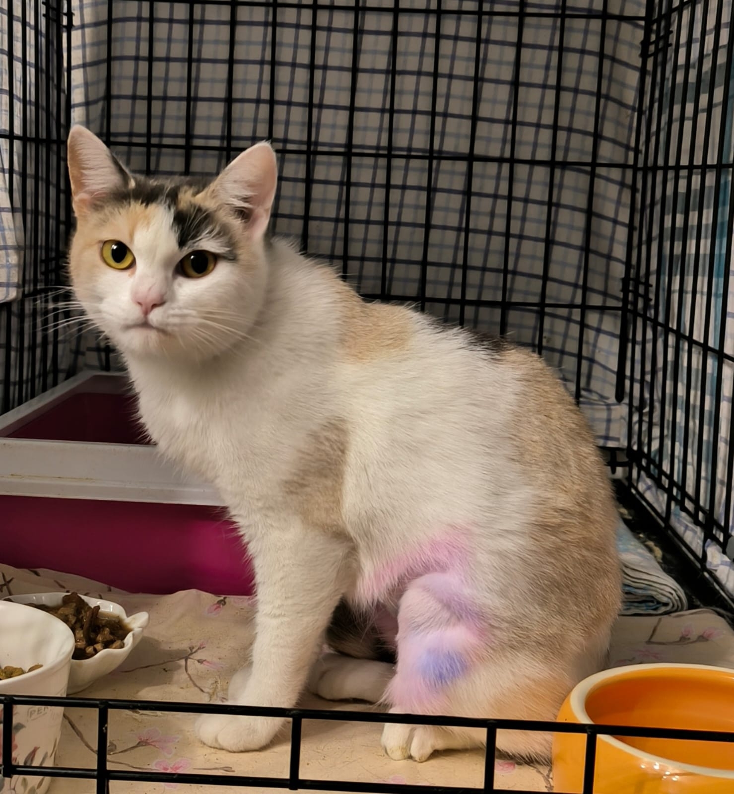 Здесь Элечку простерилизовали, обработали от паразитов и научили пользоваться лоточком, собственно, и учить её не пришлось. В лоточек она пошла сразу и промахов ни одного не было.