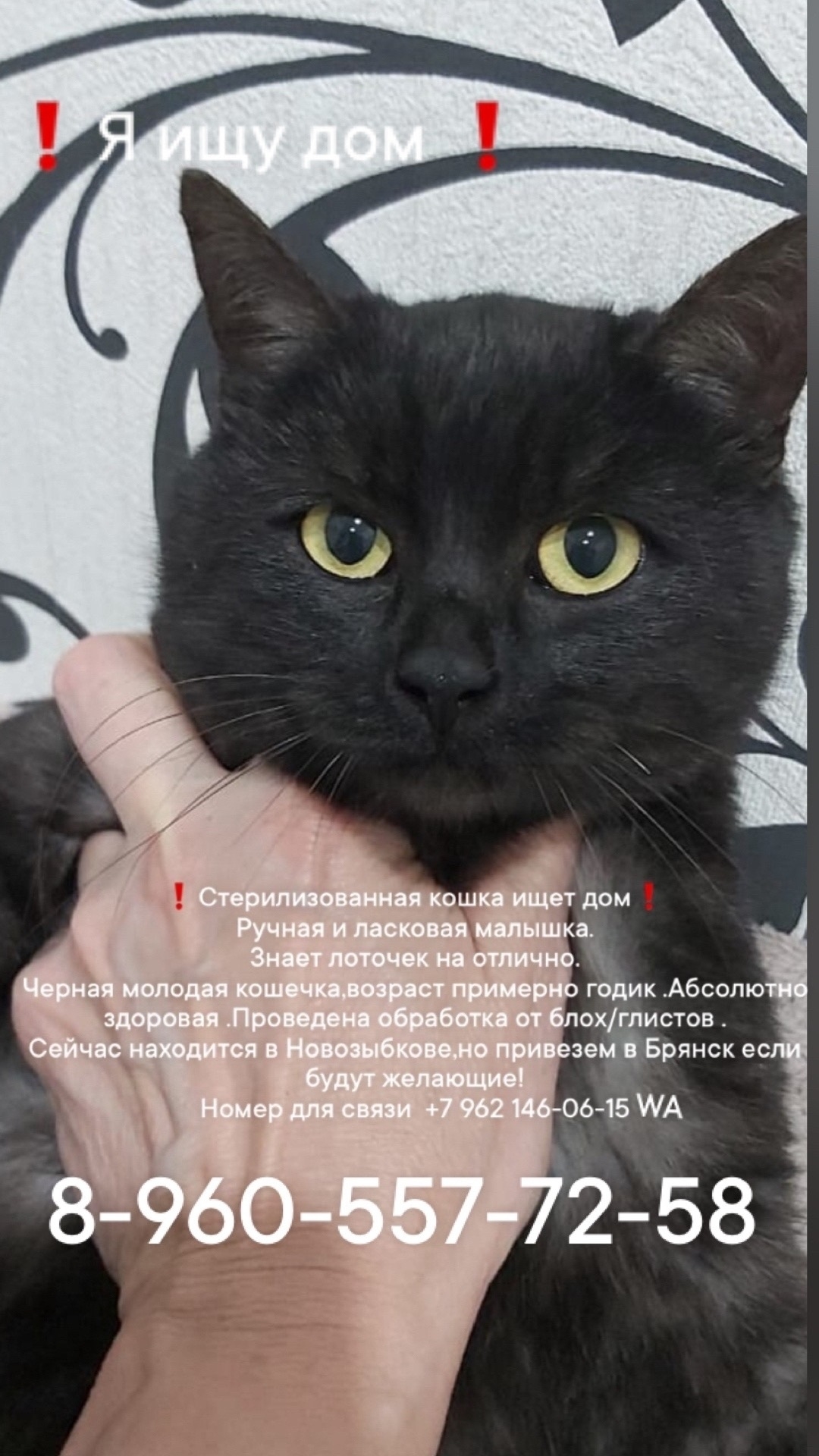Для связи 8-960-557-72-58 или [id508290448|Елена Елена] Стерилизованная кошка.. Брянск Автор admin Опубликовано Янв 14, 2026 0 0 Поделится WhatsAppViberTelegramVKOK.ru Для связи 8-960-557-72-58 или [id508290448|Елена Елена] Стерилизованная кошка ищет дом Ручная ,знает лоток 0 0 Поделится