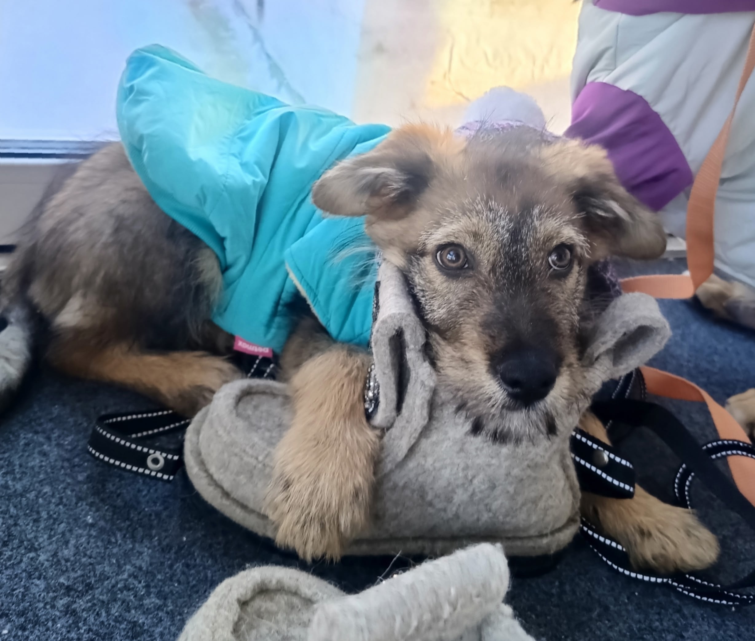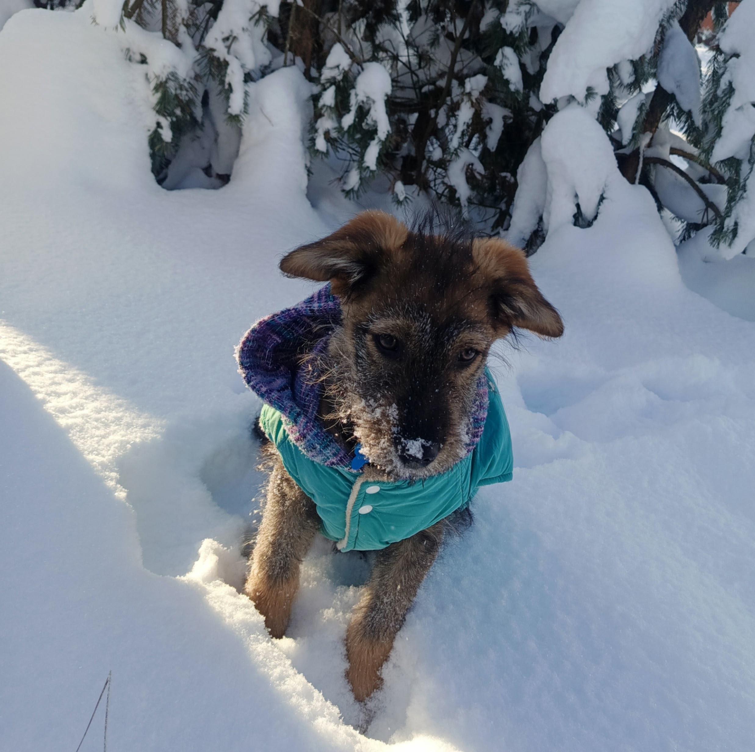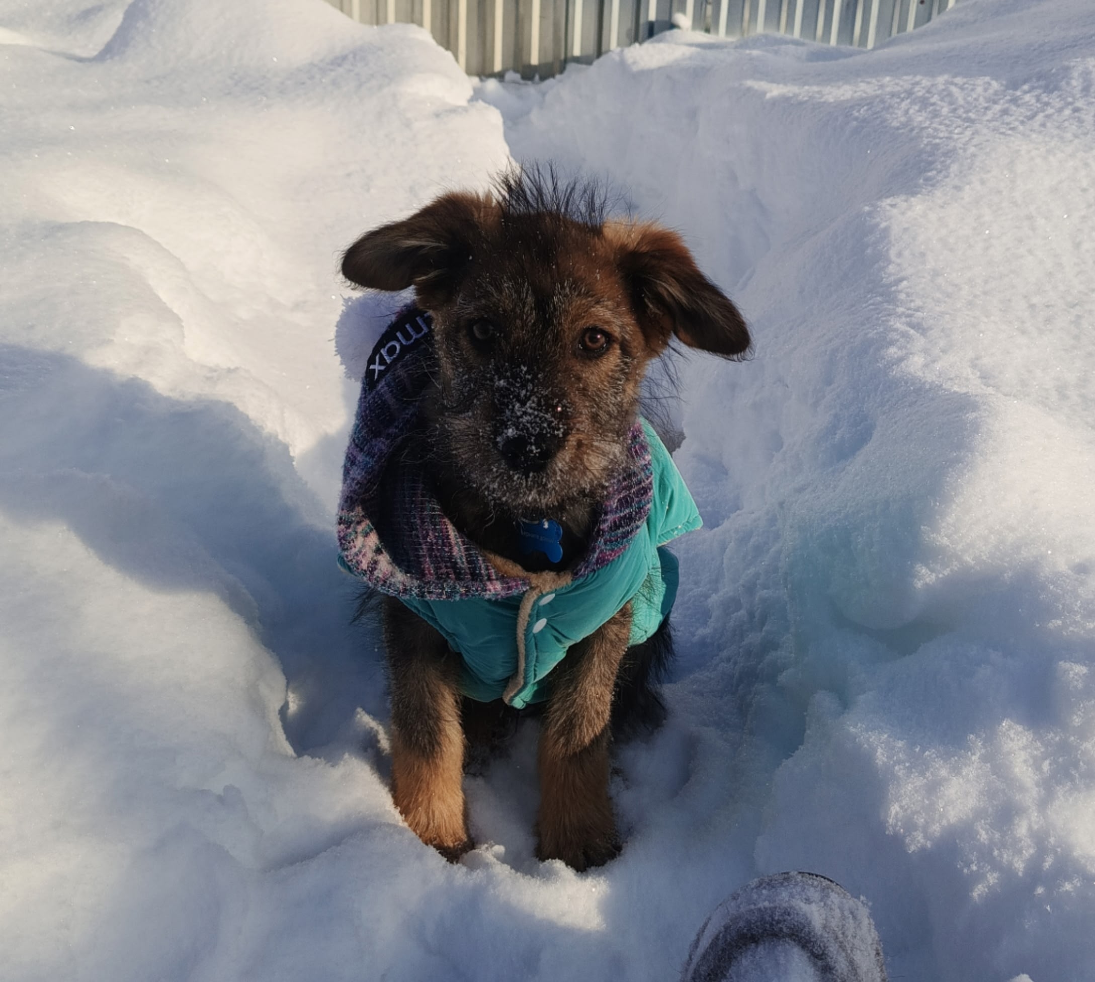 Невероятный щенок, около 4 месяцев, был найден замерзающим на кладбище, будет небольшой, мы его называем домовёнок Кузя.