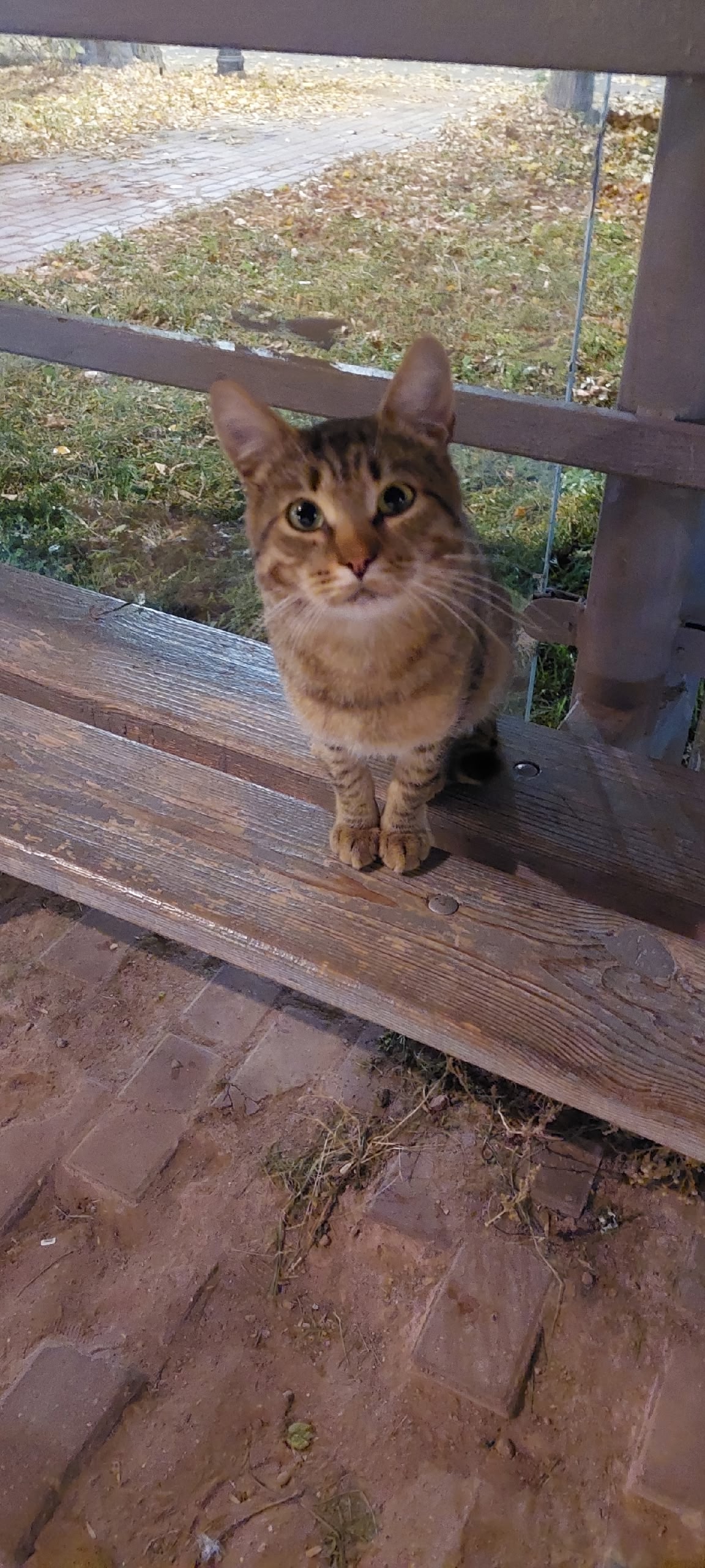 Сидит один, дает себя погладить. Кому-то наверняка нужен пушистый и добрый друг.