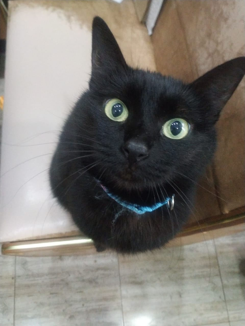 Из квартиры выбежала кошка, молодая, но крупная, черная, с голубым потрепанным ошейником, просим вернуть за вознаграждение (или подскажите, где могла промелькнуть)!
