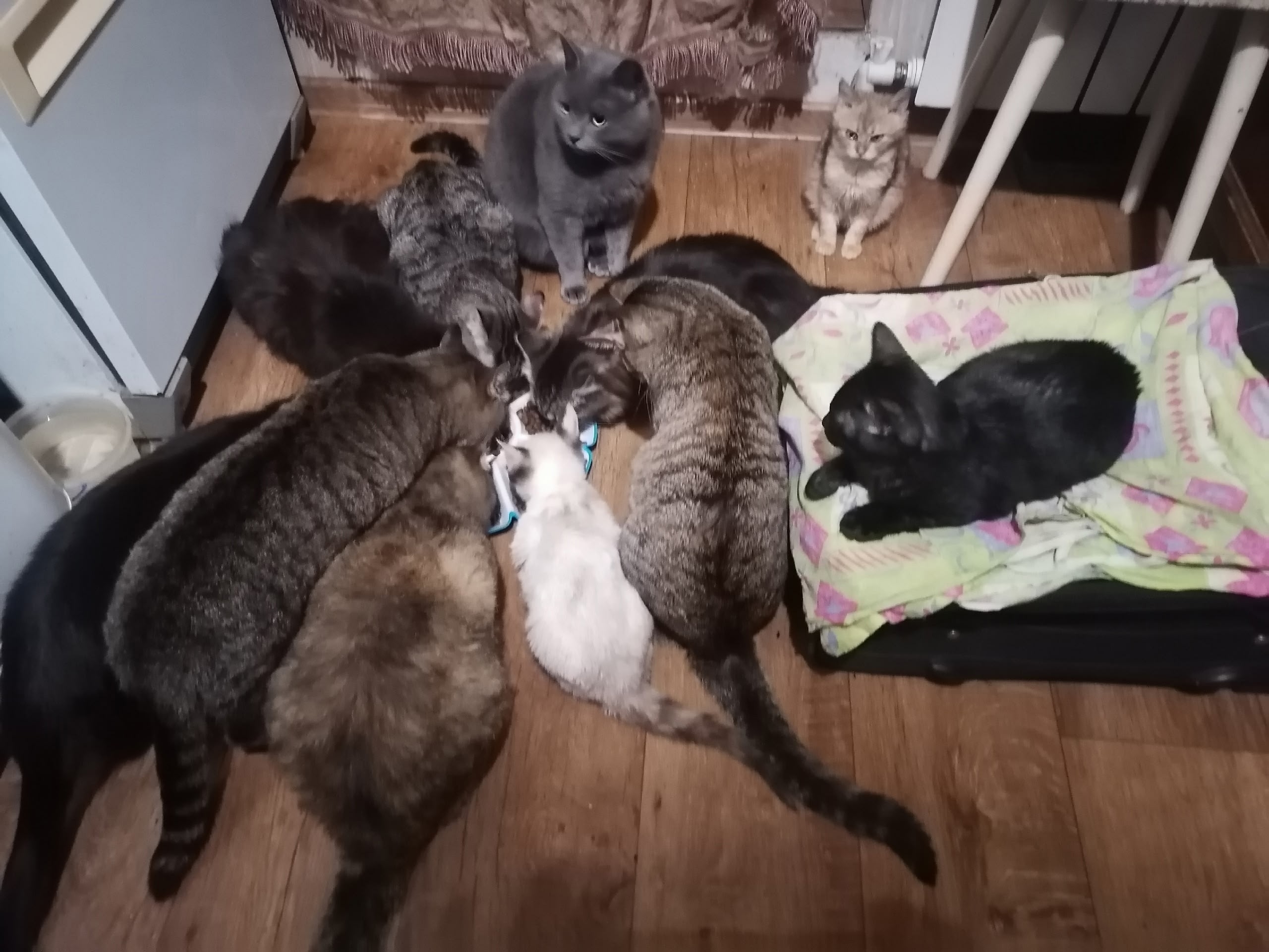 Дело в том, что я уже неделю на одной ноге скачу, вторая в гипсе, очень трудно обслуживать котеек, особенно убирать за ними, наклониться трудно. С кормом уже помогли девочки на первое время. Спасибо огромное Анне З., Ирине Н., Наталье Б., Елене Л.