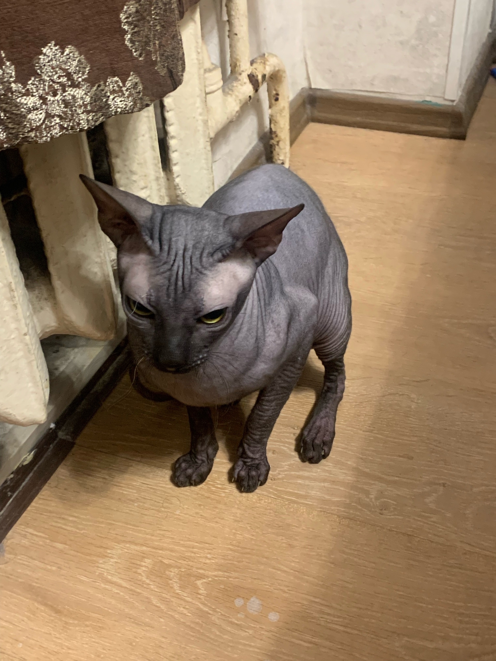 Добрый день , найден сфинкс в районе Льнокомбината у остановки “Снежинка” . Передан мне от женщины , которая его подобрала у этой самой остановки. Верну хозяину. Кот мальчик