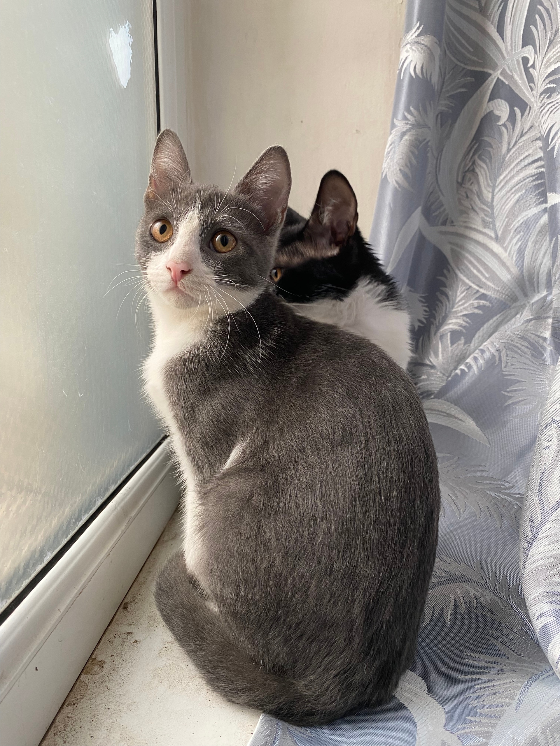 Добрый день. Подкинули под окна два котенка мальчика (черный) и девочку (серая). Котята уже достаточно взрослые, информации о них у меня никакой нет. Видно что котята домашние и в сильном стрессе, на улице долго не протянут.