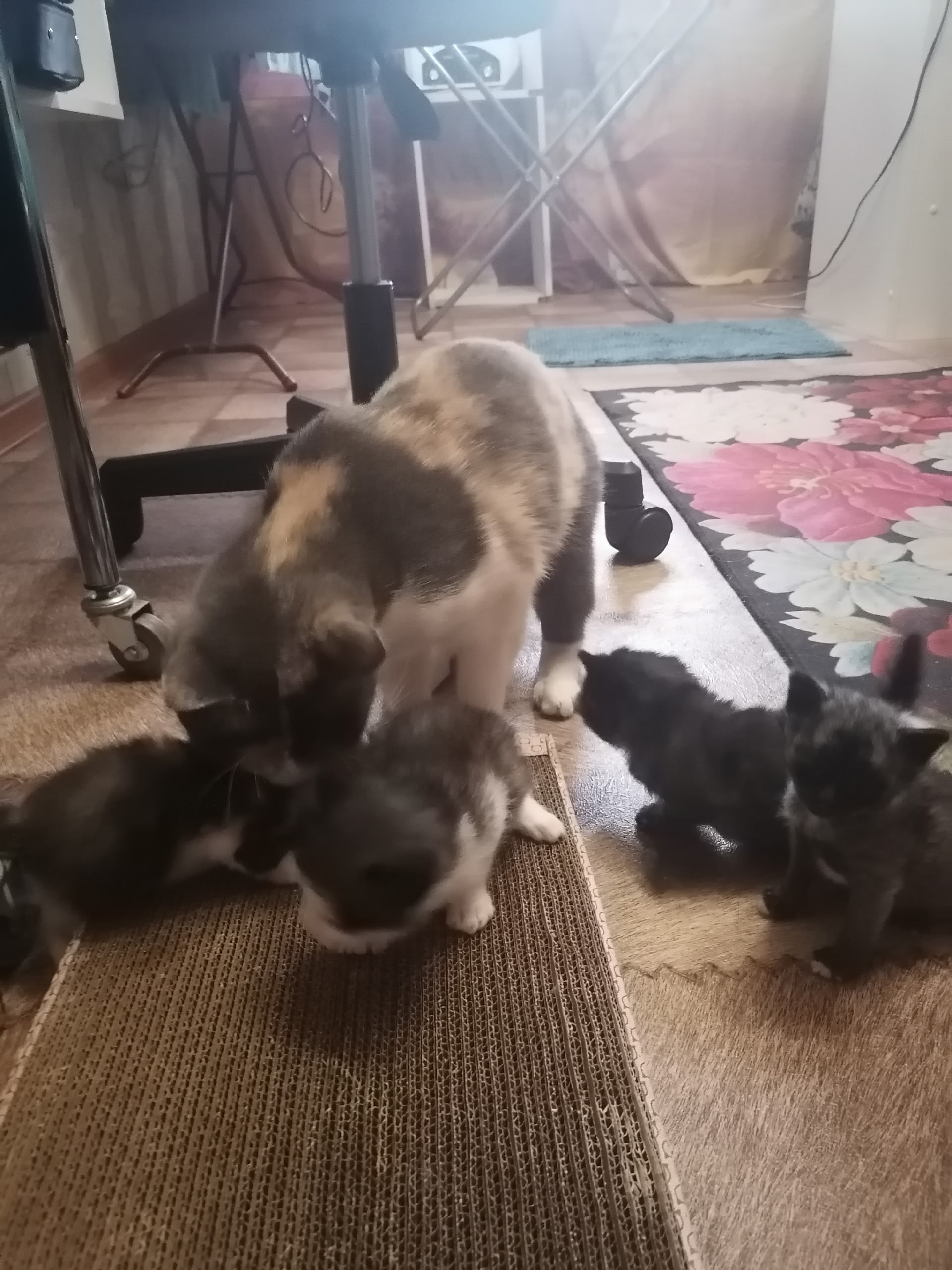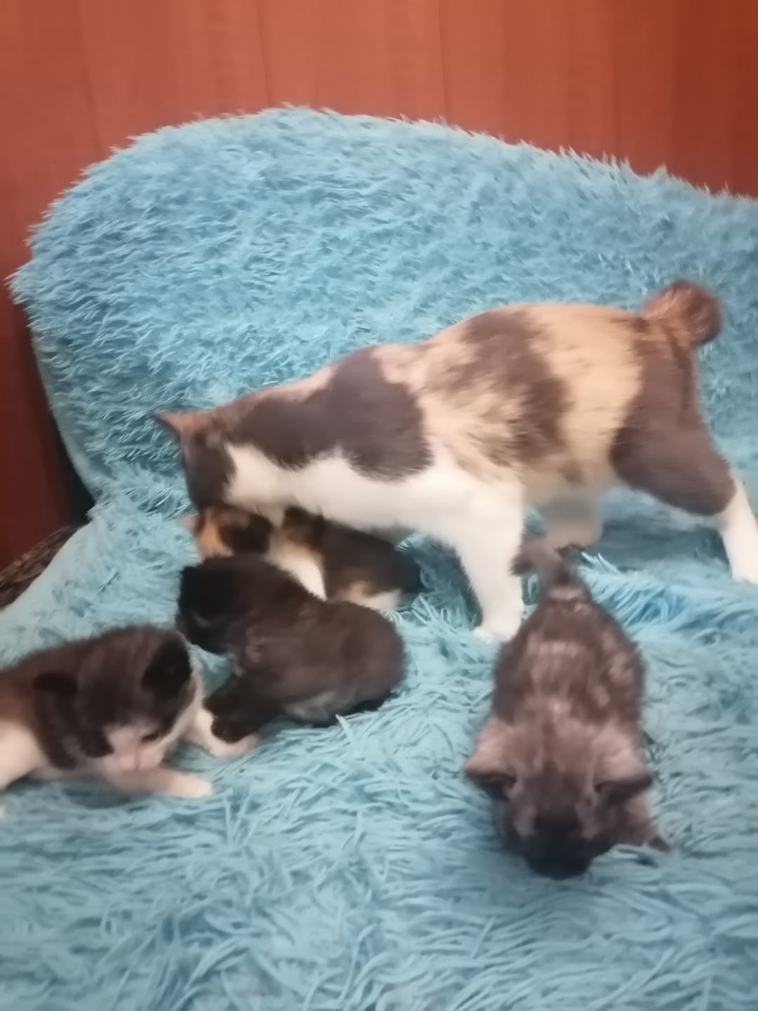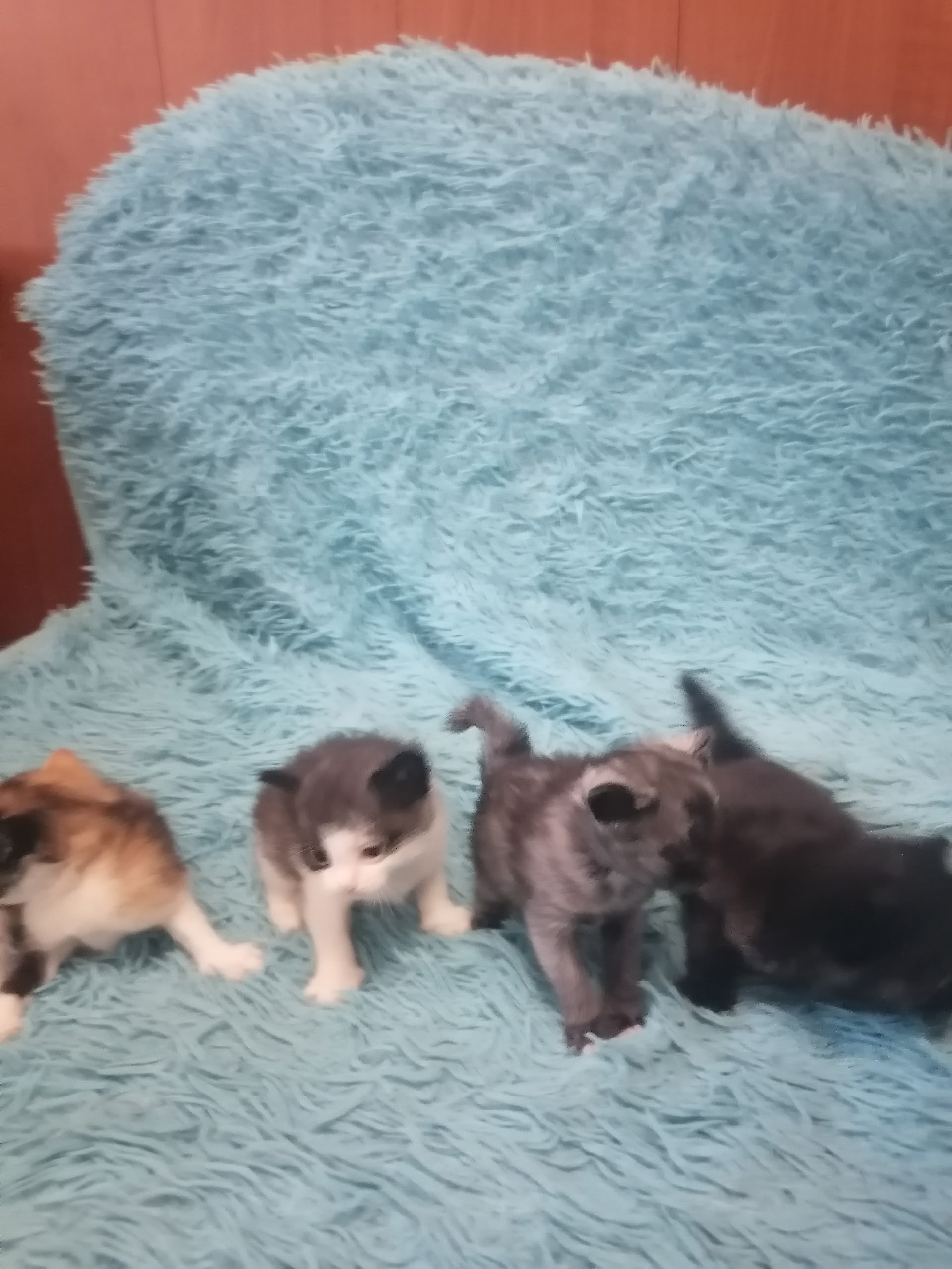 Добрый день,пристаиваю из-за переезда моих прекрасных красивых котят, их семья, дарю котят, в добрые руки котят, 4 котёнка 1 месяц им, мама наша кошка порода Курильский Бобтейл, папа Сибирский кот, 4 котёнка, 1 трехцветный как мама, 1серый,1 чёрный, 1 серый с белым.