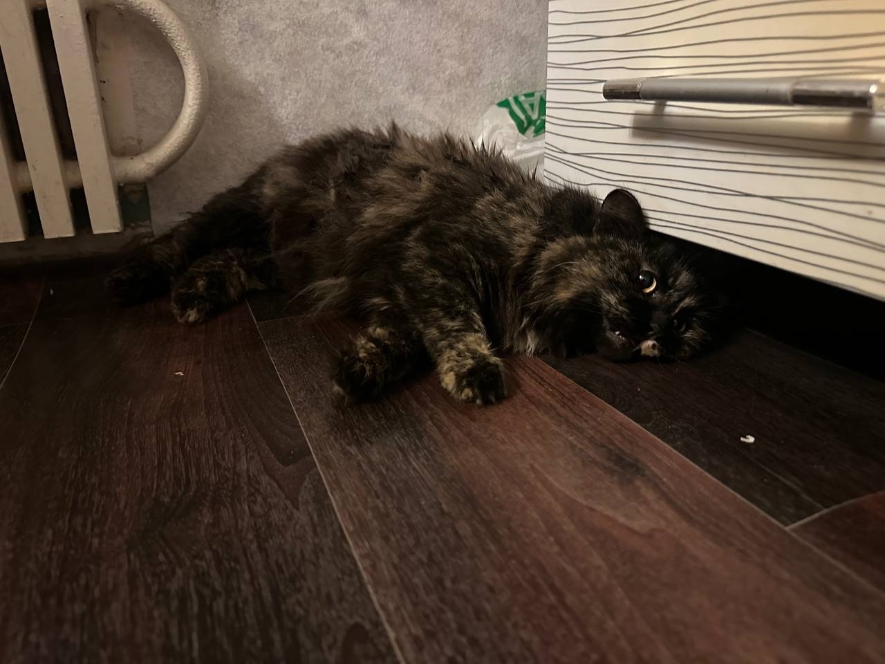 Видно что была домашняя, т.к. пушистая и ухоженная.
