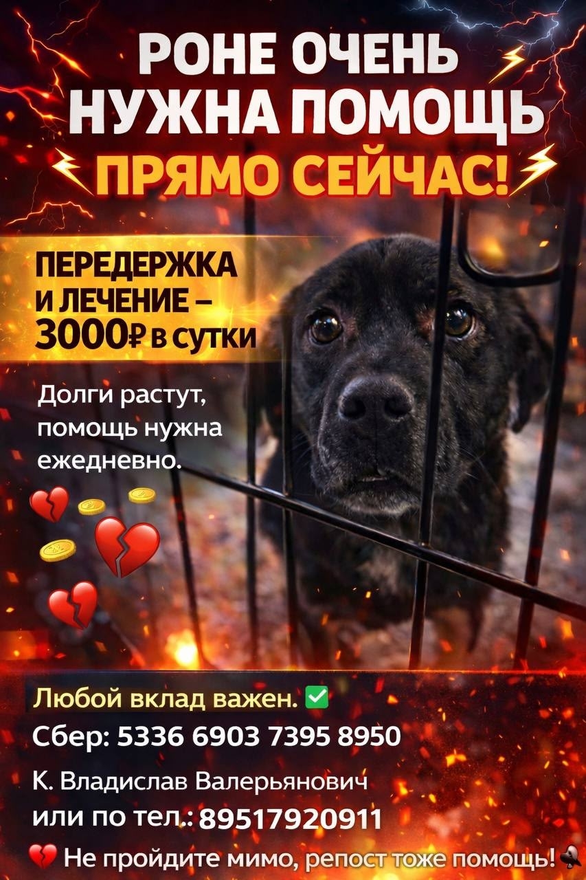 Однако, чтобы забрать Роню, нам нужно закрыть долг за платную передержку. На данный момент у нас есть возможность погасить остаток долга за 21 день декабря в размере 63 000 рублей. Если мы сможем собрать эту сумму, мы сможем вернуть Роню домой и продолжить лечение самостоятельно! ✊