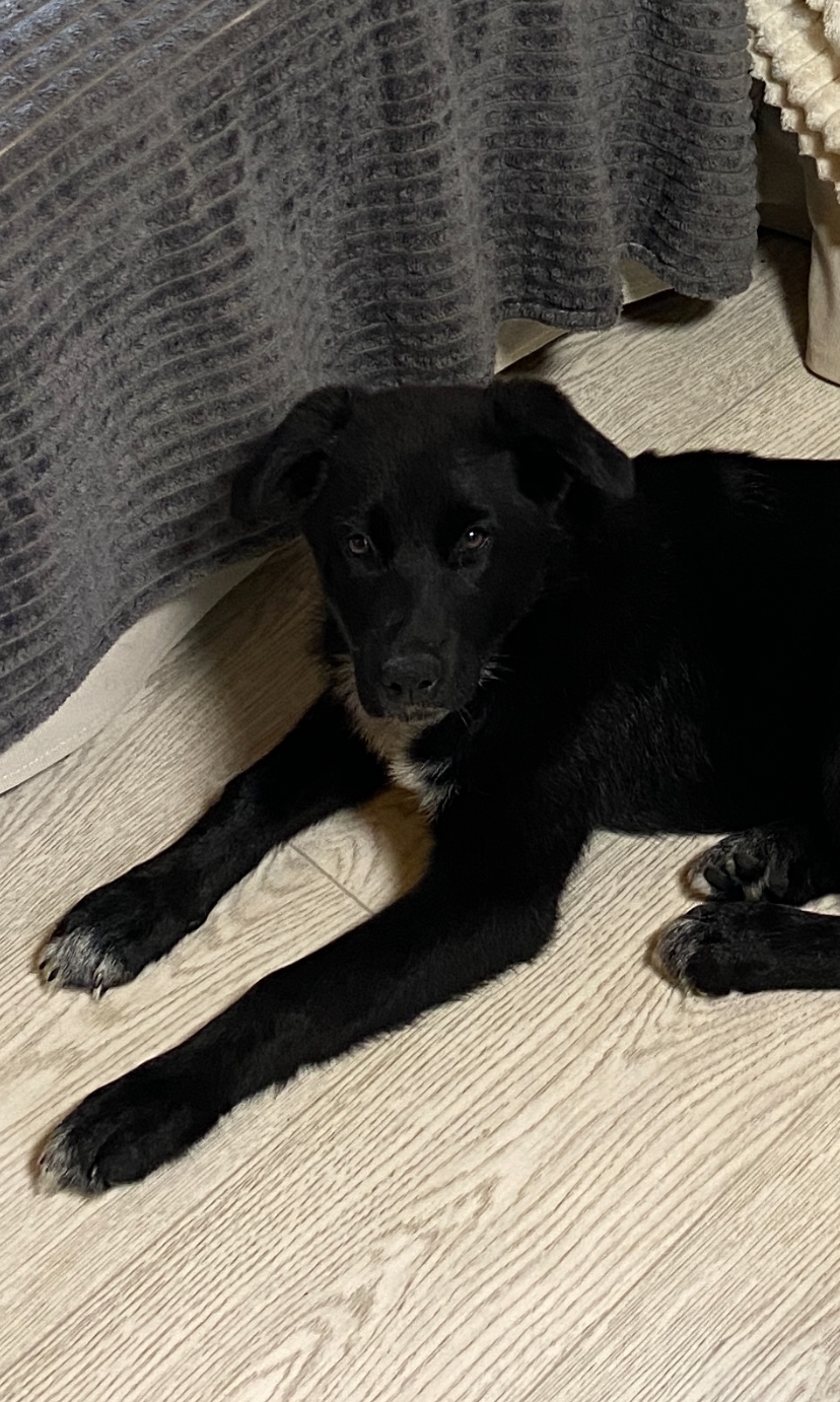 Девочке 3,5 месяца. Из шести щенков осталась одна она. Очень умная, контактная и активная. Прекрасно ладит с другими животными и детьми.