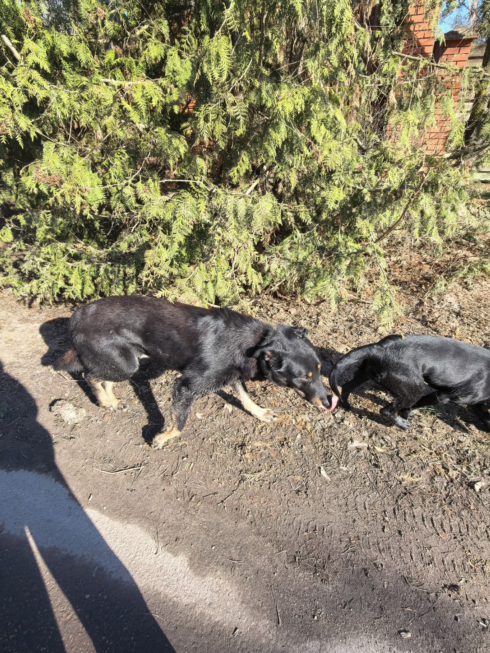 Две собаки бегают по дергаево! Мальчик (первое фото, с коричневыми лапами) уже неделю точно, у него с зубом что то, вываливается. Вторая похоже девчонка. Оба с ошейниками. Увязались за мной и перебежали в поповку. У девчонки карабин сломанный на ошейнике